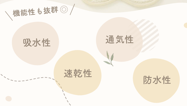 ・下段に機能性を配置し、情報が理解しやすいようにまとめました。また、歪みのある丸を使用し、暖かみを演出しました。