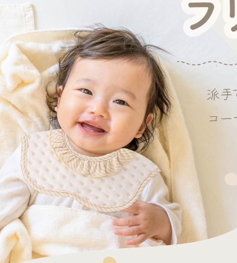 ・赤ちゃんの素材にスタイを合成させ、着用イメージが伝わるようにしました。