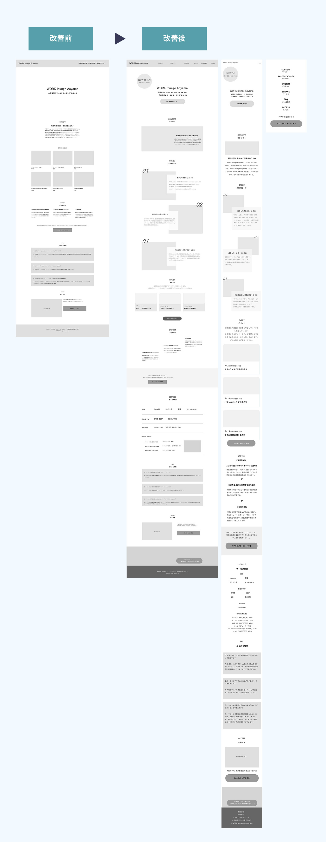 SHElikes MULTI CREATOR COURSEの課題で、女性専用のカフェ&コワーキングスペースのLPを制作しました。クライアントからの要件書とPCワイヤーフレームを元に、ワイヤーフレーム改善、PC・SPのデザインカンプを制作しました。