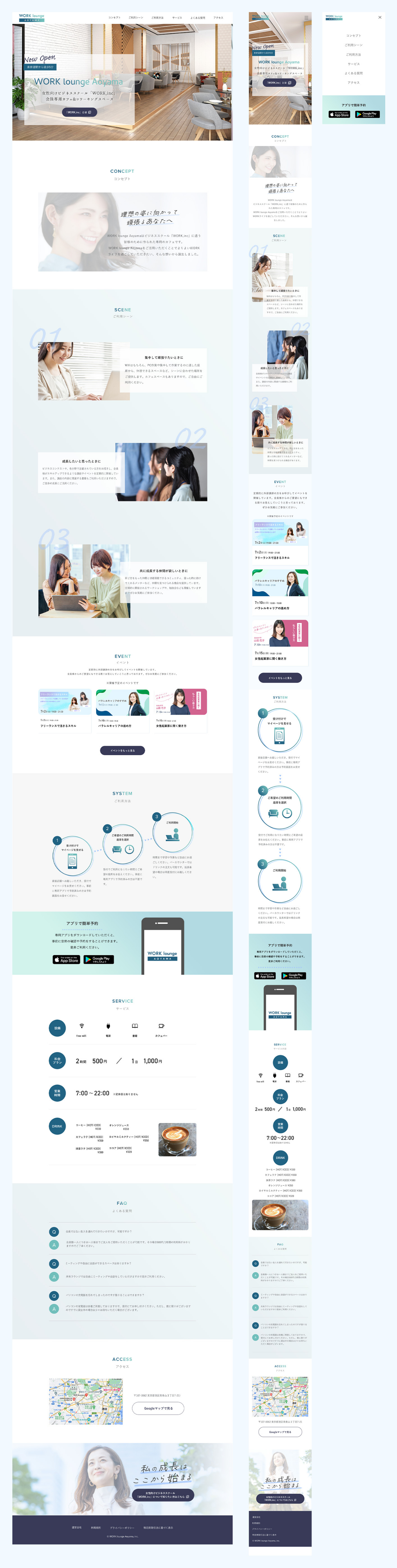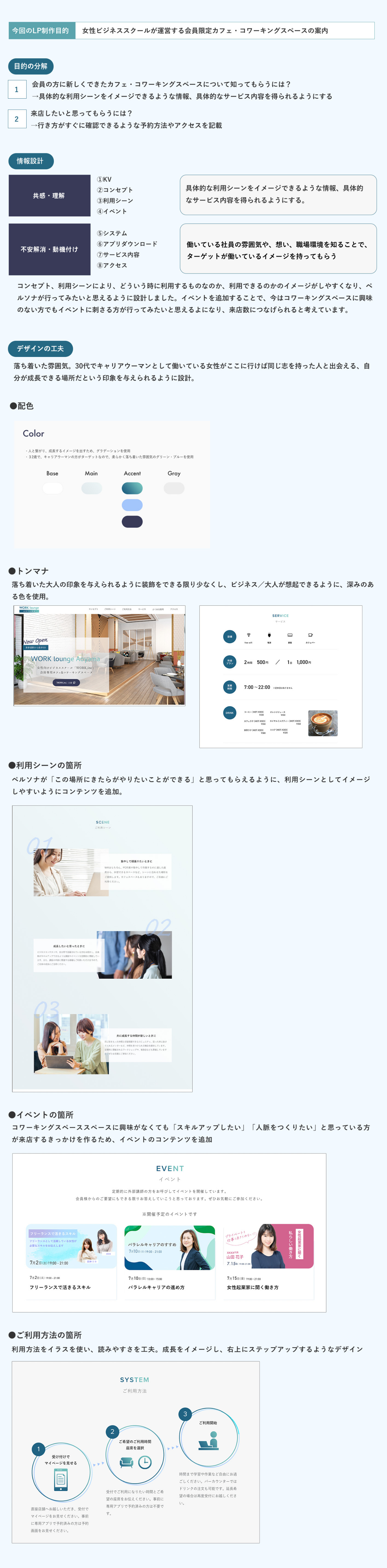 架空サービスのLPデザイン(女性専用のカフェ&コワーキングスペース)