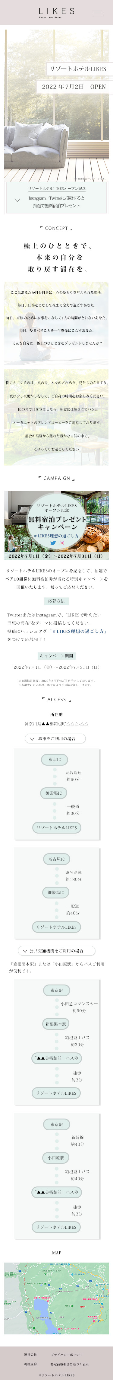 【架空】キャンペーンサイト デザインカンプ(スマホ用) aya OVERVIEW SHElikesの課題でLPのデザインカンプを作成しました。 作成日:2023年9月5日 YEAR 2023 ホテルのオープン記念キャンペーン用LPのデザインカンプ(スマートフォン用)です。全体的にシンプルで落ち着きのある雰囲気にしつつ、キャンペーンの告知部分は目立つように他の部分よりも色を鮮やかにしました。●制作物