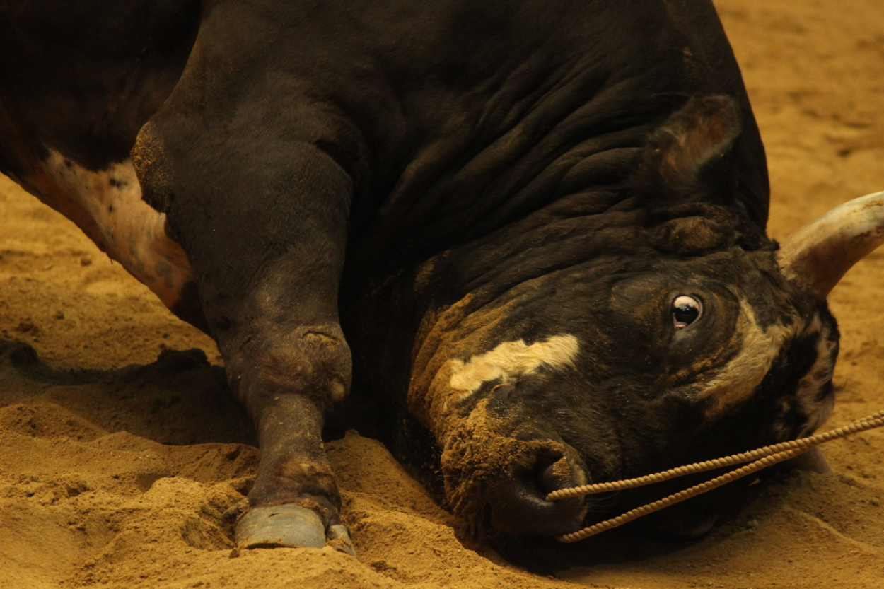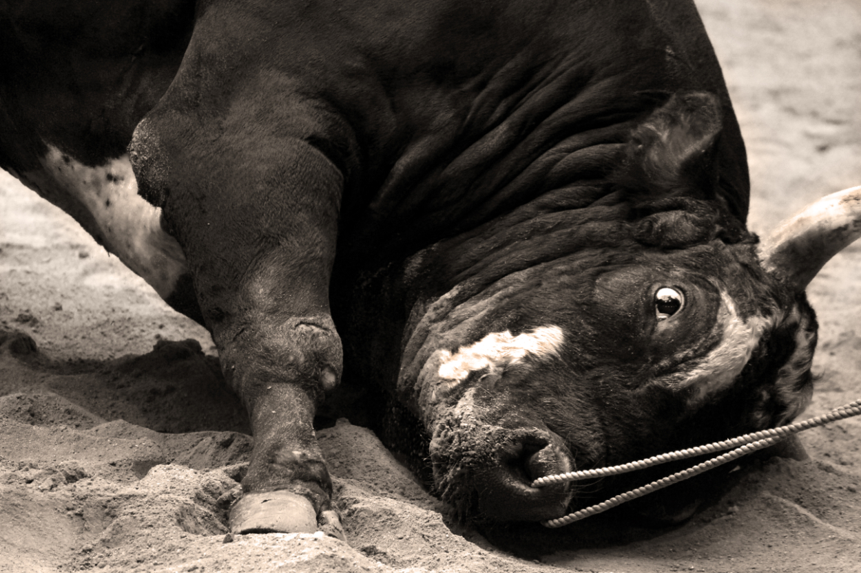 牛の皮の質感と迫力を出すためにモノクロにしました。