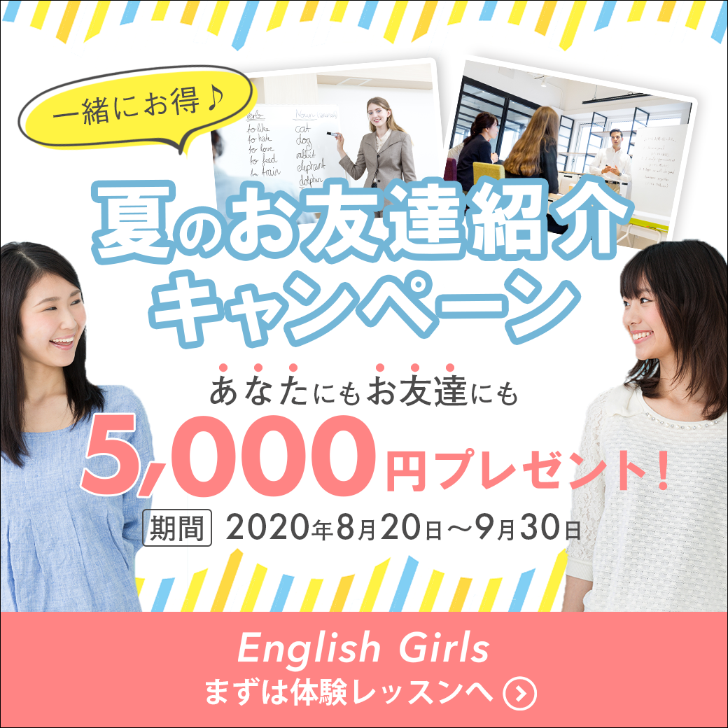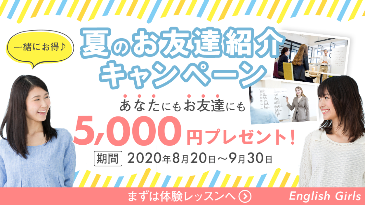 夏の季節感と配色に合う二人の女性の画像をメインに配置し、背景の白と右側の女性の服装の色が同化しないよう、若干色味の調整を加えています。また、文字背面に英会話スクールのイメージに沿った画像を配置し、白枠とドロップシャドウでこちらも背景と同化しないようにしています。