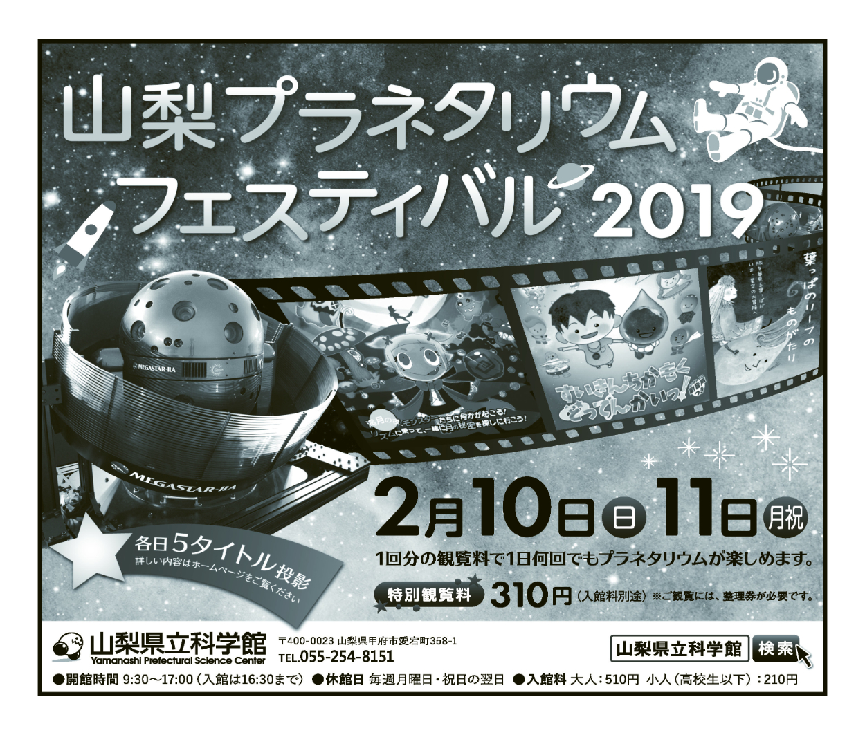 山梨県立科学館で開催のイベント「プラネタリウムフェスティバル」の広告を制作しました。