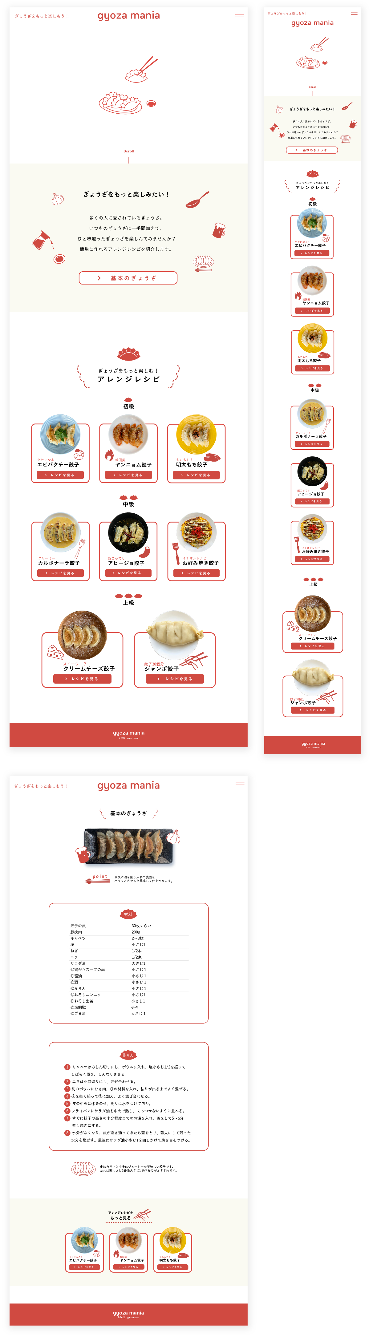 - レシピページはイメージが湧くようにレシピのポイントのイラストを入れた。