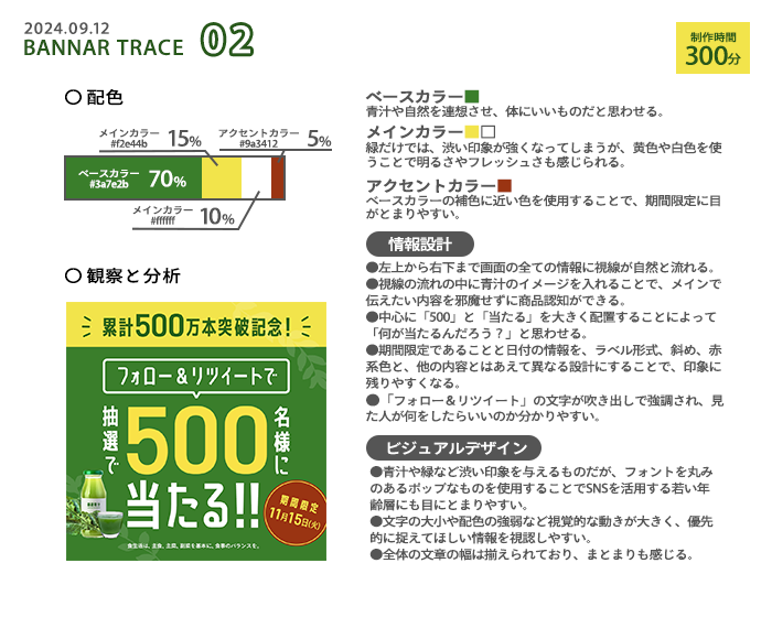 - 既存のバナーを見て分析し、デザインの目的を考えて言語化することを意識してじっせんできました。