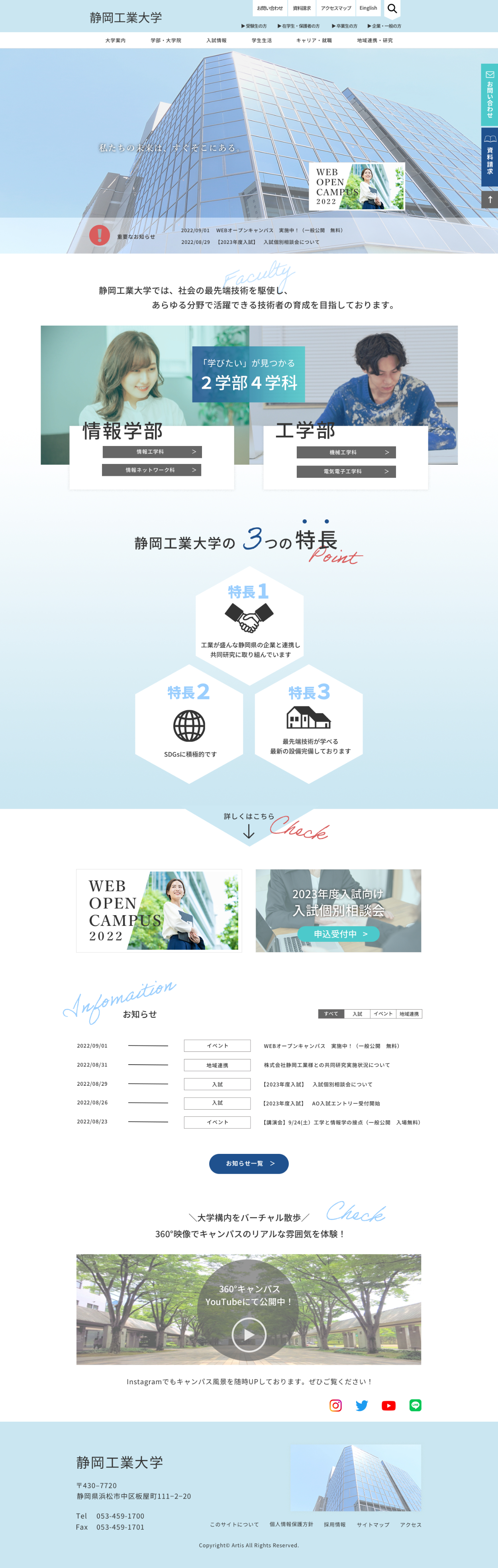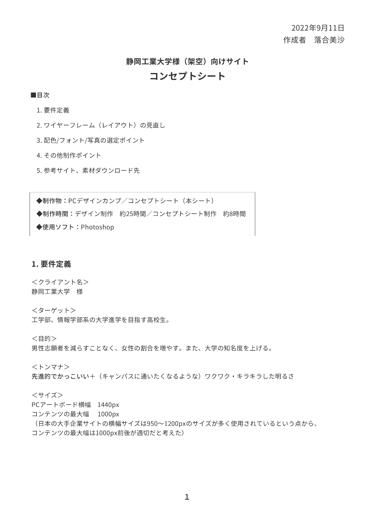 架空の大学HP Misa Ochiai WEBデザイナー OVERVIEW 大学進学を目指す高校生向けに(架空)大学のホームページデザインを制作しました。 YEAR 2022 <制作物>デザインカンプ/コンセプトシート