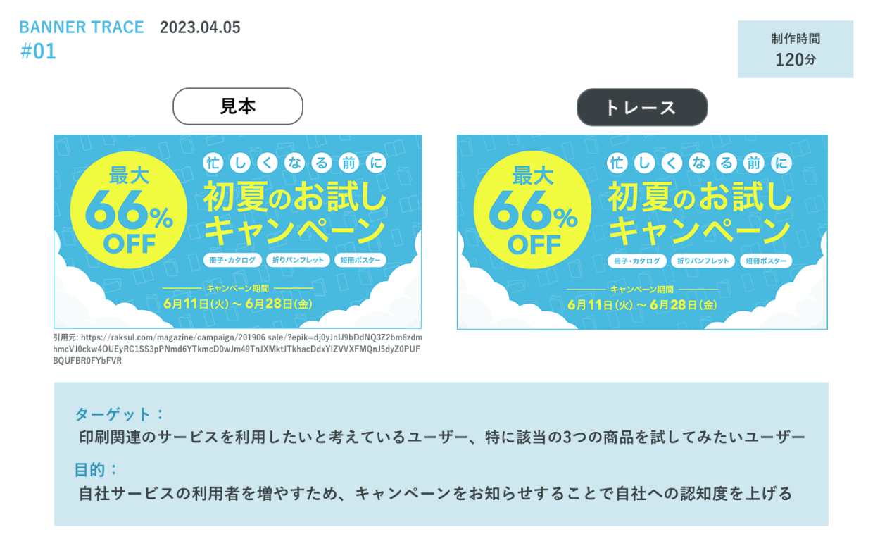 【課題】バナートレース(ラクスル初夏キャンペーン)