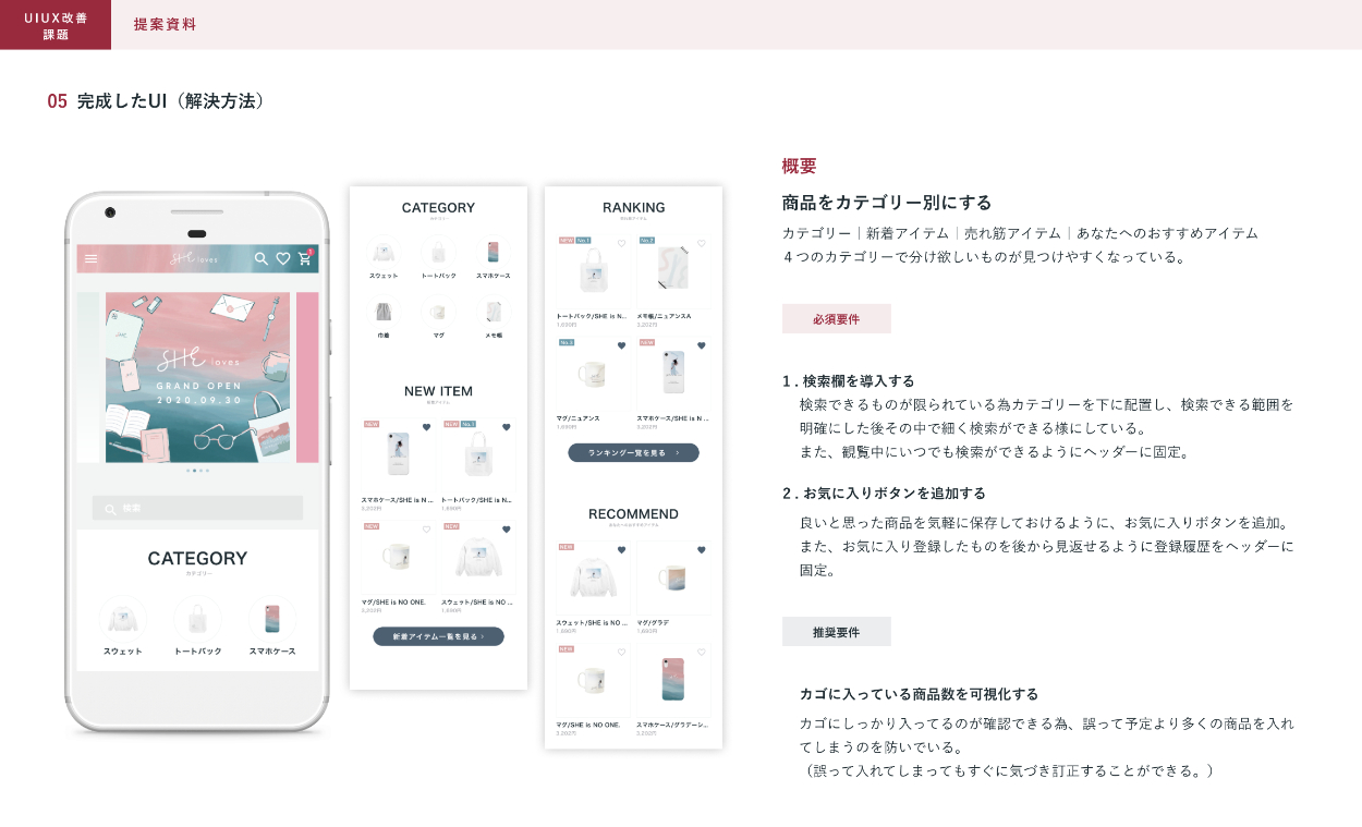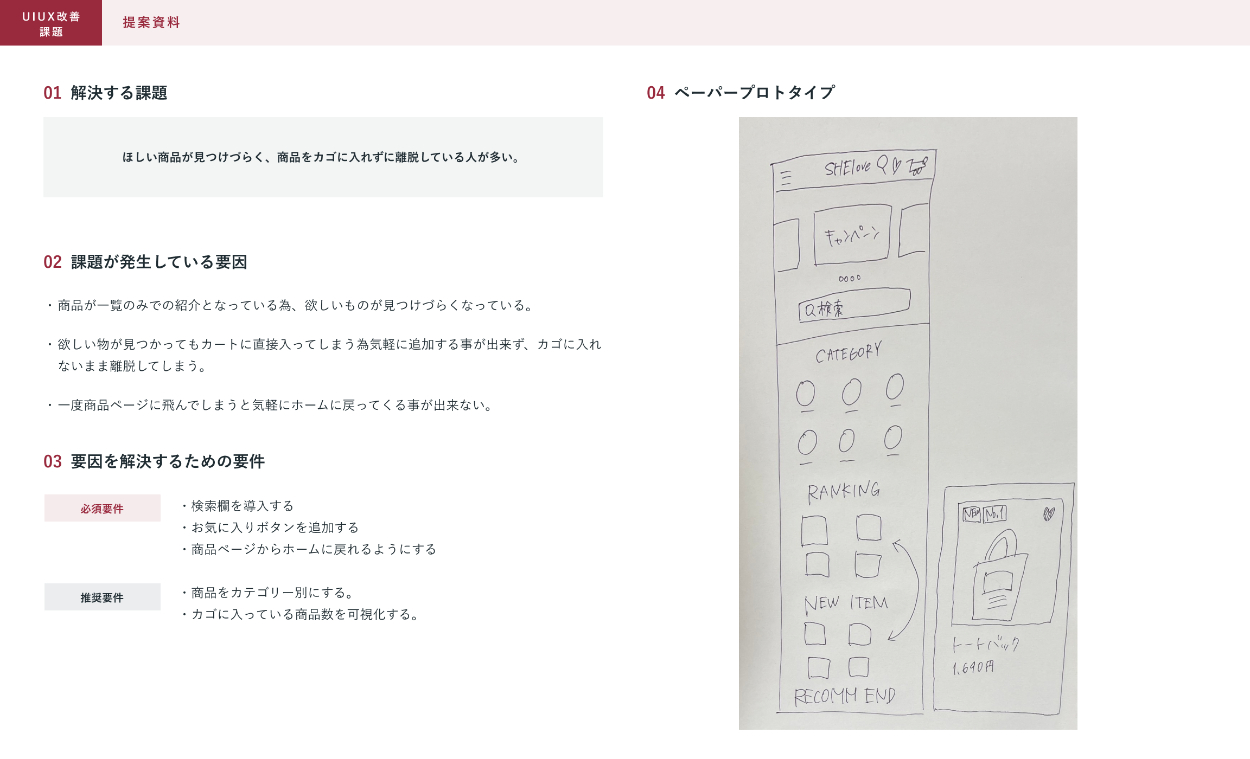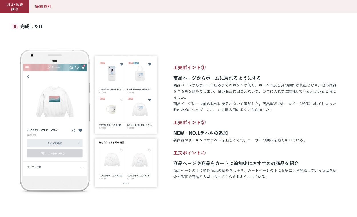 SHElikes MULTI CREATOR COURSEにてECサイトのUIUX改善課題に取り組みました。 ◼️制作日数:約1週間