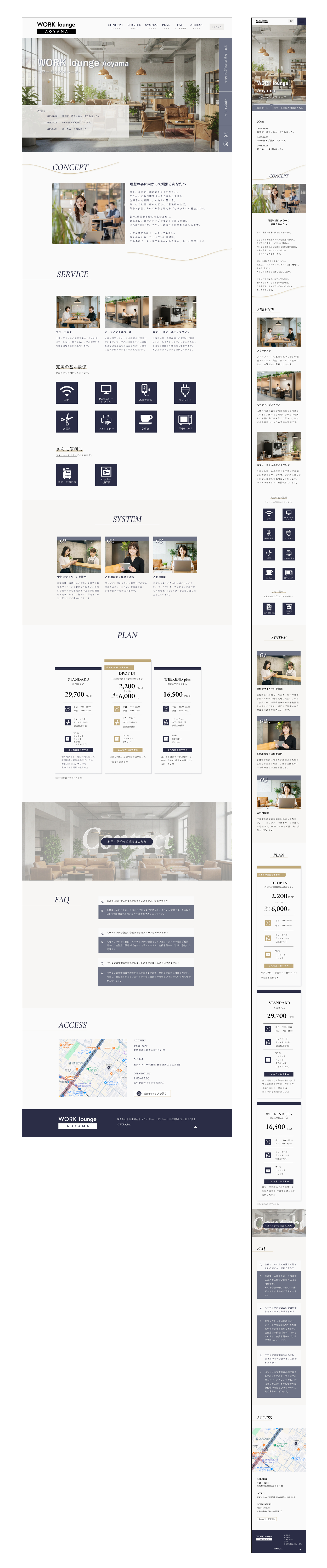SHElikes PRO デザイナーコース 4つ目の課題として架空のコワーキングスペースのLP制作を行いました。[ 制作時間:40時間程度 | 制作期間:2週間 | 使用ツール: Photoshop、figma ]