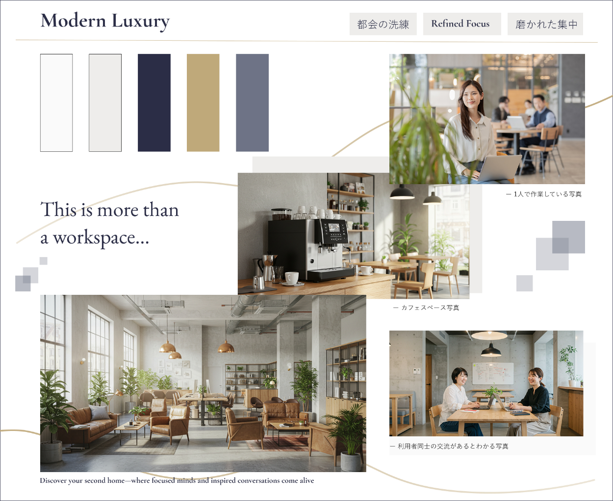 ターゲットユーザーであるキャリア志向が強く自己成長に積極的なビジネスパーソンに向け、単なる作業場所ではなく「ワンランク上の自己投資の場」として価値を提供することを目指します。