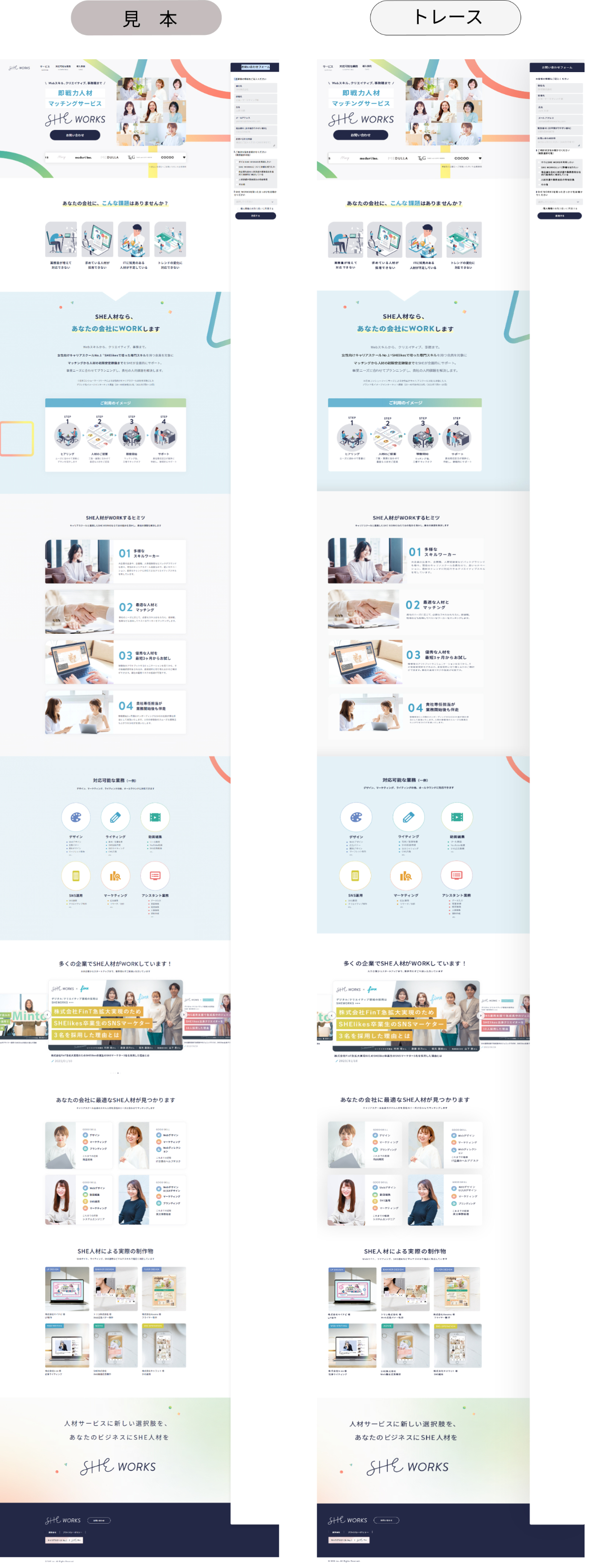 SHElikes マルチクリエイターコースデザイン実践課題③ の課題ではWebページのトレースと分析に取り組みました。スタイルガイドの作成にも挑戦し、一定のルールに則ってデザインを作るということについて学びました。