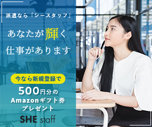 キャリアスクールSHElikesのデザイン演習コースにて、演習課題として架空求人サイト「SHE staff」の集客バナーをデザインしました。