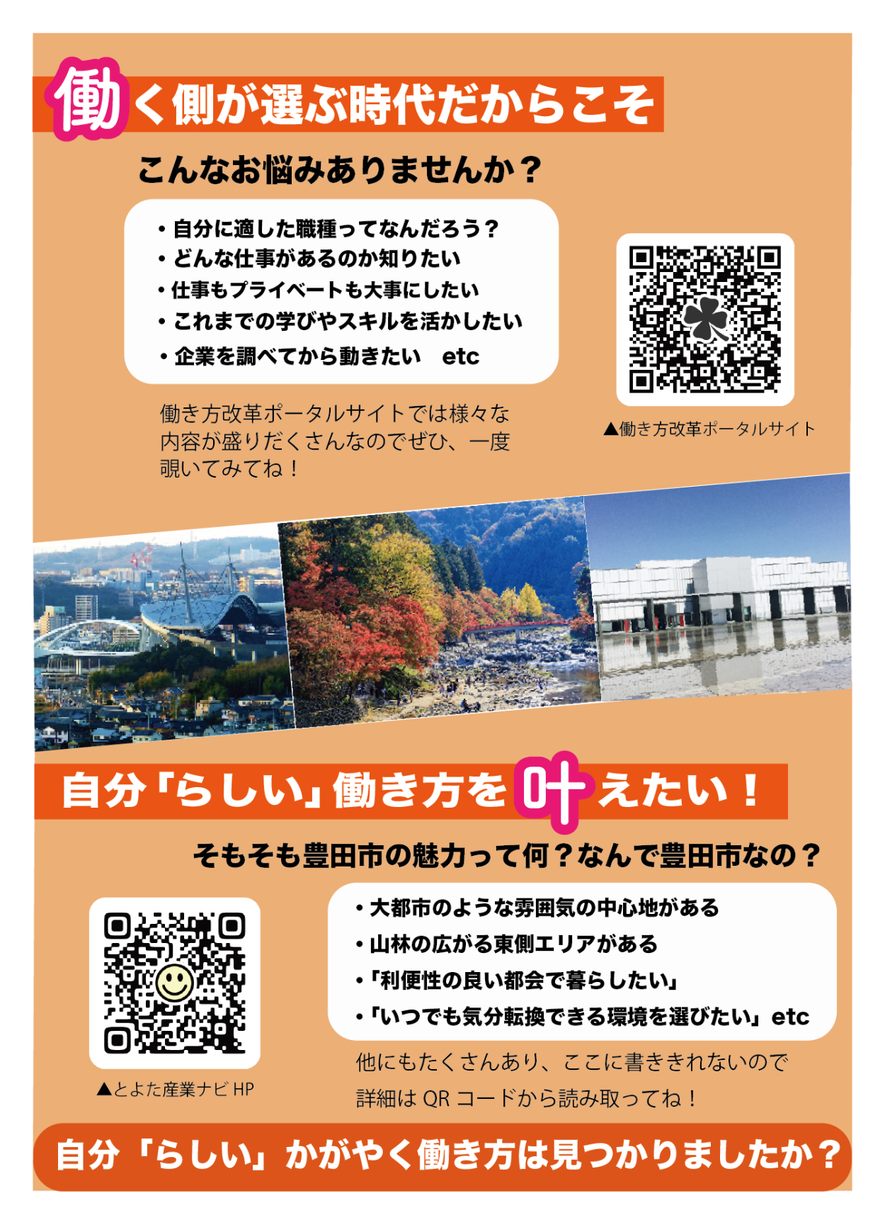 3)最後に《自分らしい働き方は見つかりましたか?》と問うことで再度興味を持っていただき、HPへアクセスしていただけるように制作