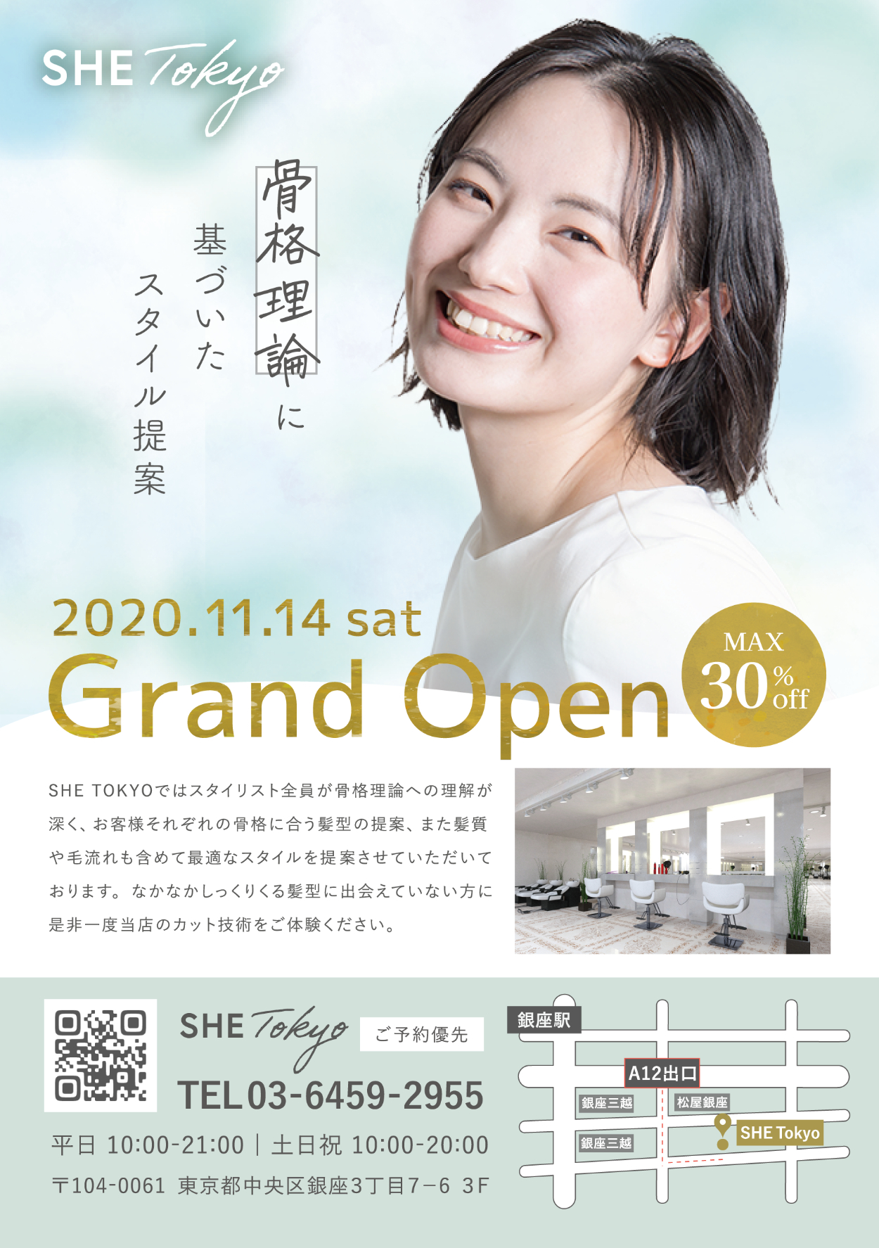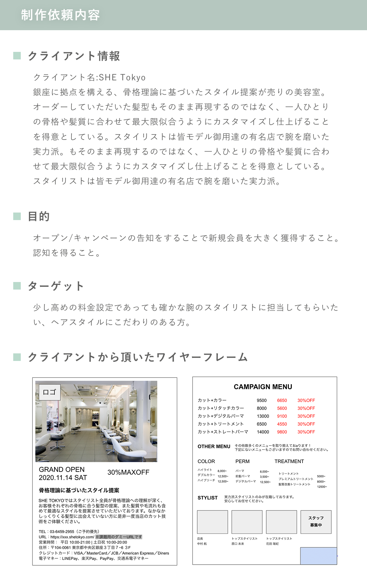 SHElikes MULTI CREATOR COURSEの制作課題にて、美容室のオープニングキャンペーンのフライヤー制作に取り組みました。(制作期間:3日)