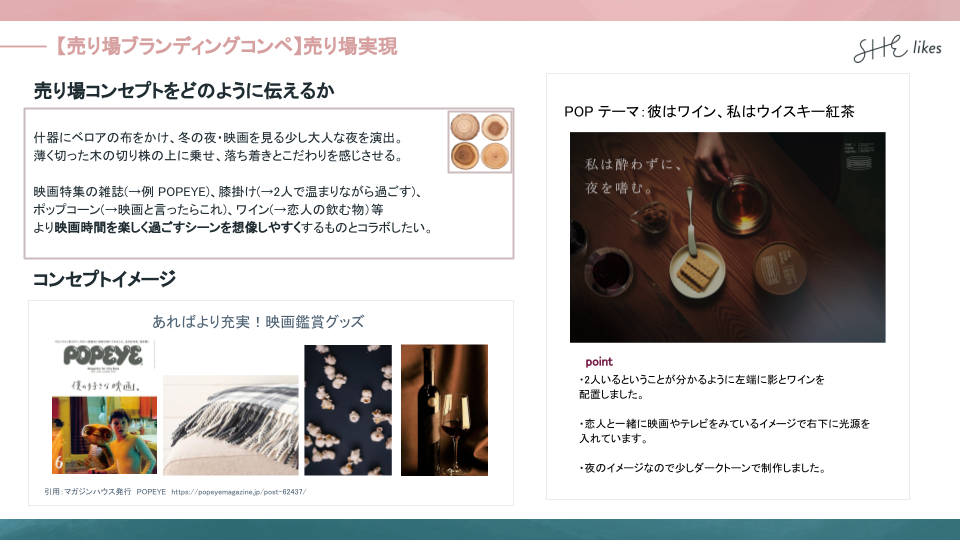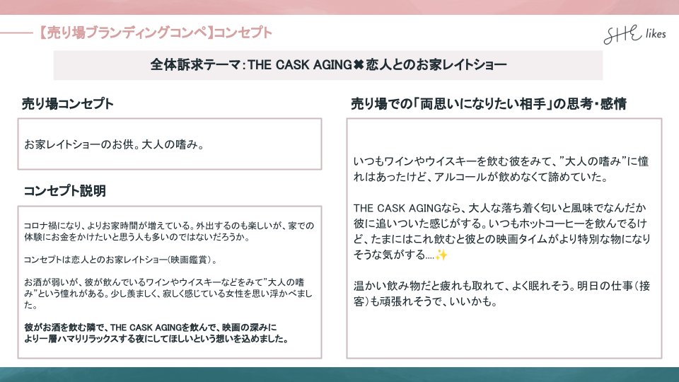 世界へお茶の普及を目指している、株式会社tea room様 と 東急ハンズ、SHElikes が主催する、THE CASK AGINGの売り場ブランディングと店舗で展開するPOPの制作コンペに応募しました。
