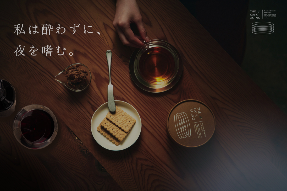 彼がお酒を飲む隣で、ノンアルコールのウイスキー 紅茶、THE CASK AGINGを飲んで、より一層リラックスする夜にしてほしいという想いを込めました。
