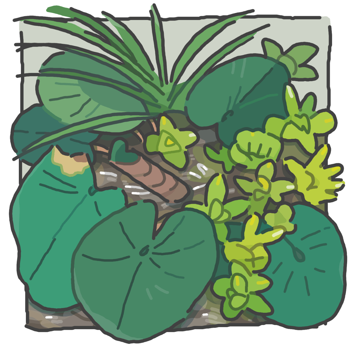 ----------------------------------------------------------------------------------緑色を使った絵が描きたかったので、家の庭にあるビオトープ(鉢サイズ)を題材として描きました。