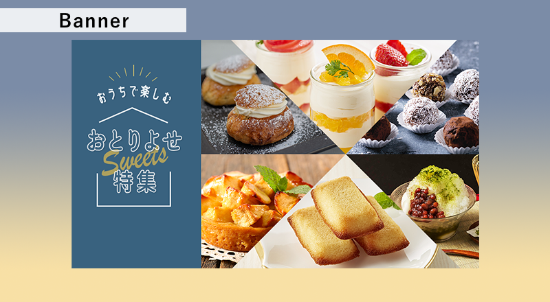 全国の名産品やスイーツのECサイトのトップページ、数ある商品からピックアップした商品の特集ページを告知