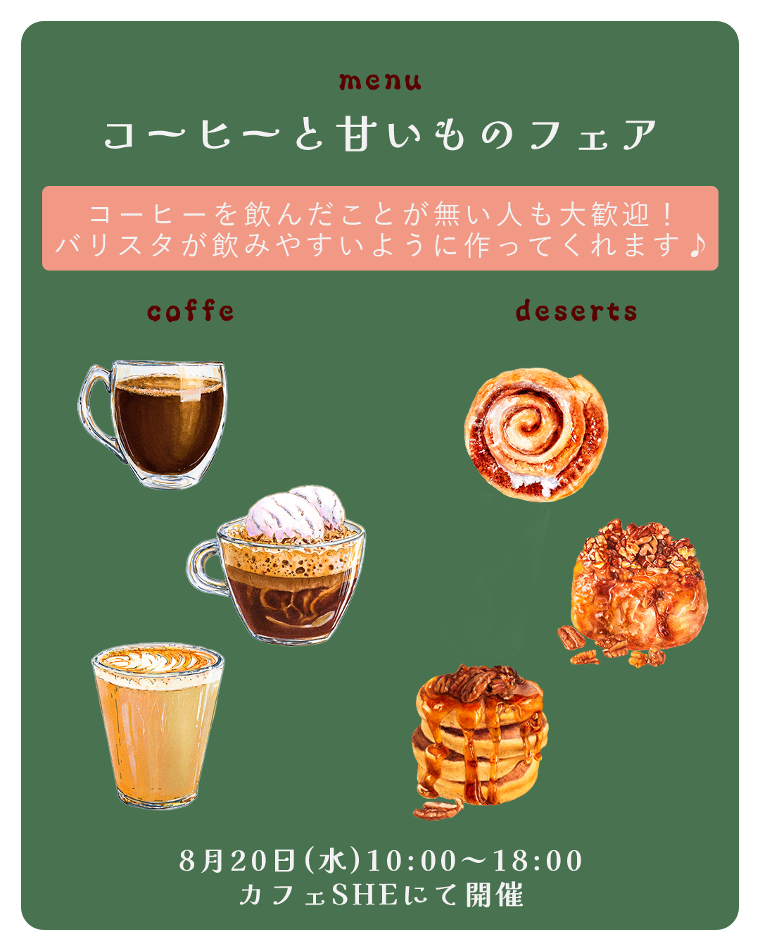 - コーヒーの魅力とお店で提供されるスイーツを知ってもらうためのフェア開催のバナーを制作しました。