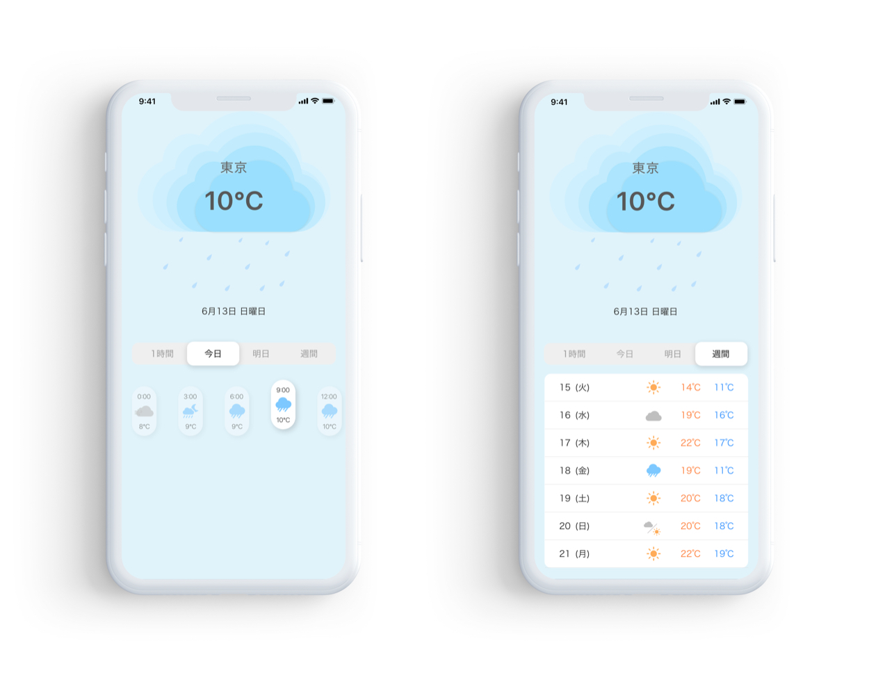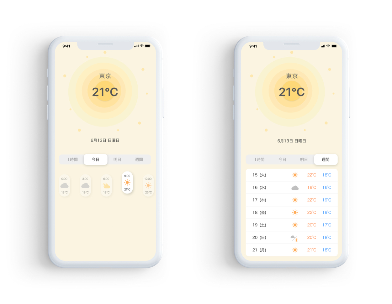 - アプリを開いてすぐに天気がわかるよう直感的なデザインにこだわった。