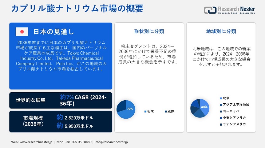 アジア太平洋地域でも、この地域での畜産業の増加により、2036年までにカプリル酸ナトリウム市場は大幅に成長するです。アジア発展途上国では、経済成長と農家の生活様式の両方において家畜が不可欠であり、飼料の防腐剤として機能し、動物のパフォーマンス向上に役立つカプリル酸ナトリウムの需要が急増しています。