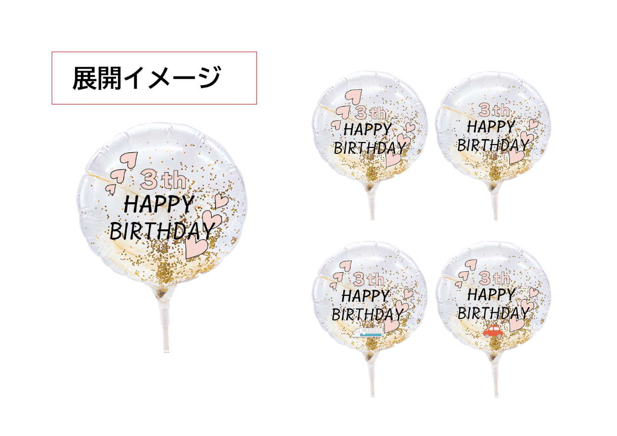 3)《happyberthday》の文字を《happy wedding》等に変更することで多彩に活用できる