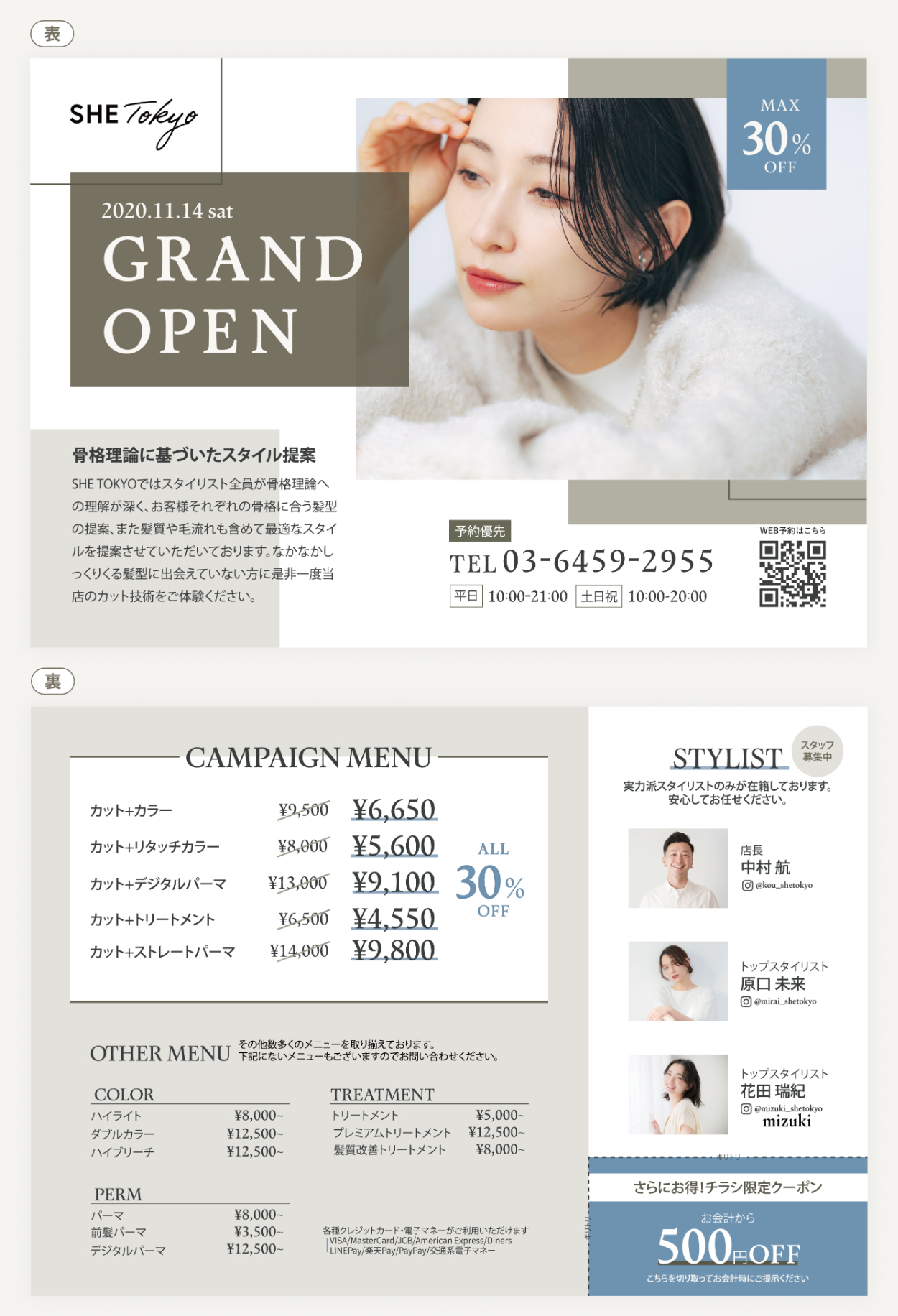 ・カラーやカットなどどの分野を得意とするのかを知ることは、お客様の不安感を和らげ期待値を高めるのではないかと考え、美容師が運用するInstagramのユーザー名を付け加えました。Instagramは投稿により個人の持つ雰囲気が現れやすかったりこれまでの実績を知ることができます。