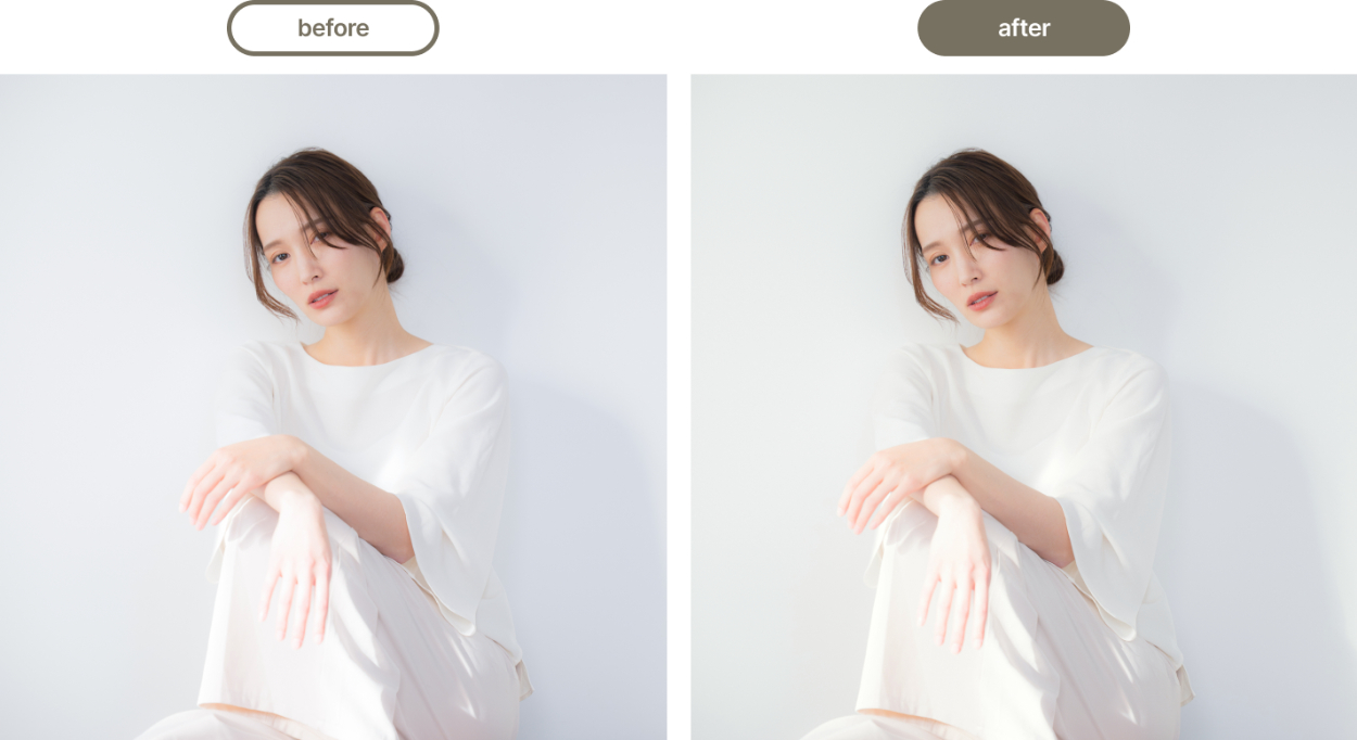 ・設定したカラーに合うようにPhotoshopで色味の調整を行いました。下記画像は青みが強かったため、あしらいに使用しているグリーンとマッチするようにしました。