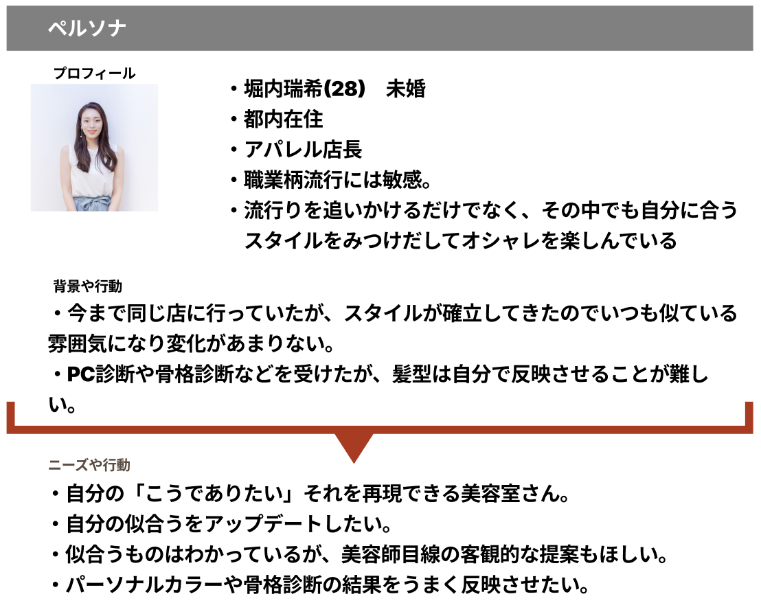 ・フライヤーは店舗周辺の住宅にポスティングするのではないかと想定し、銀座周辺に住む方をイメージしてペルソナを設定しました。