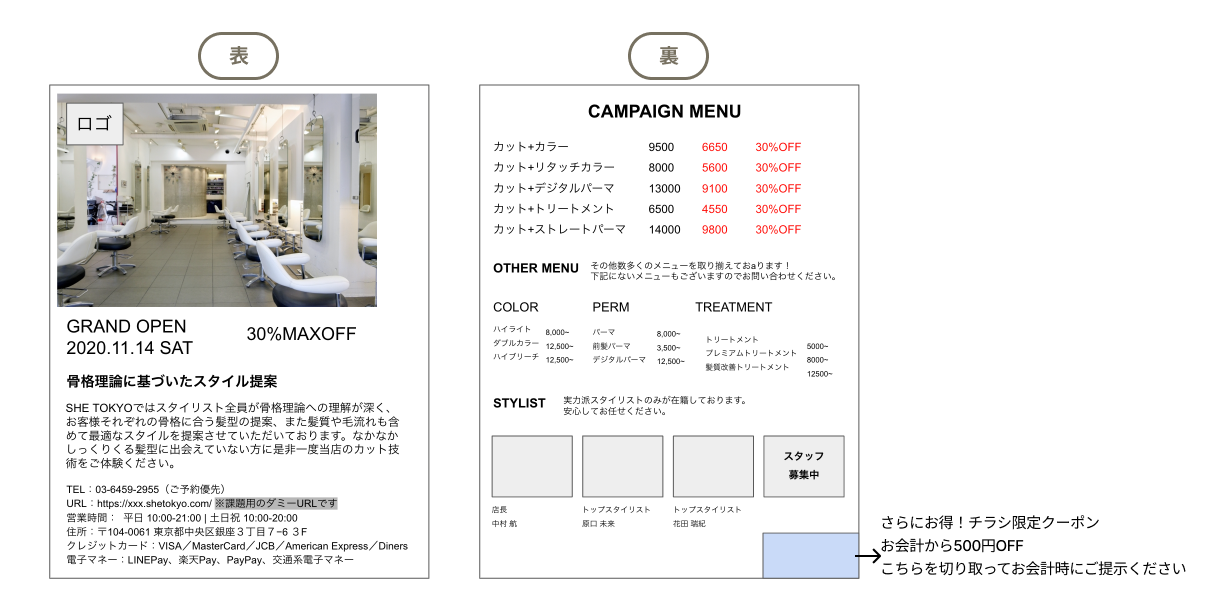 ・フライヤーを作成し、オープン/キャンペーンの告知をすることで新規会員の獲得と認知を得る