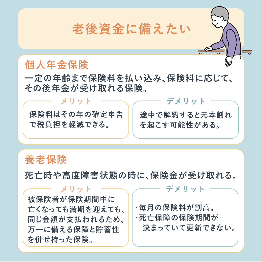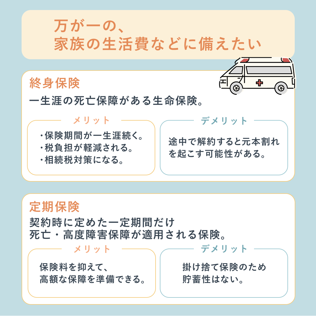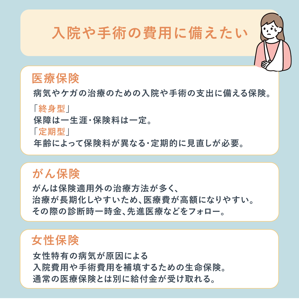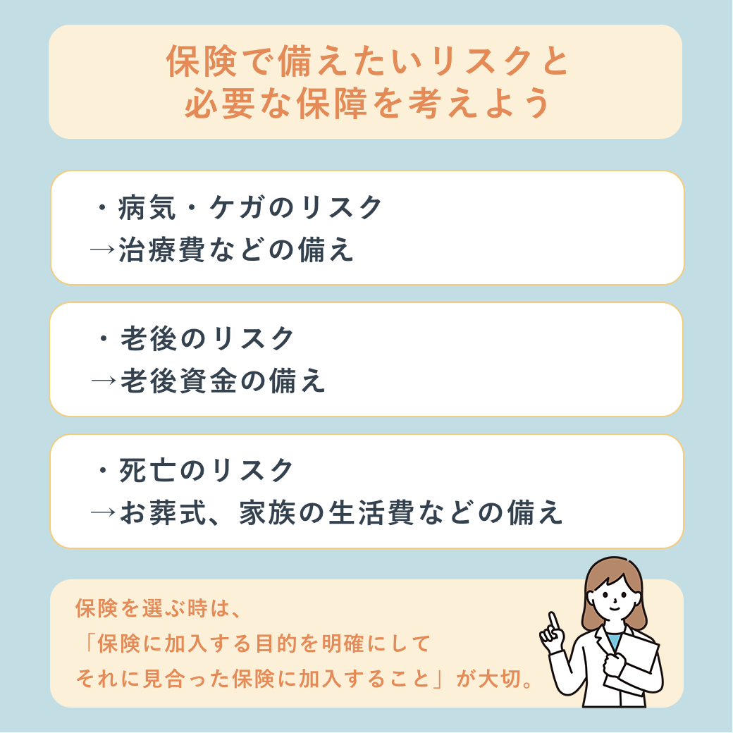 ・2枚目でどんな保険があるのかを大まかな分類で紹介し、気になるものをチェックできるような配置にしました。