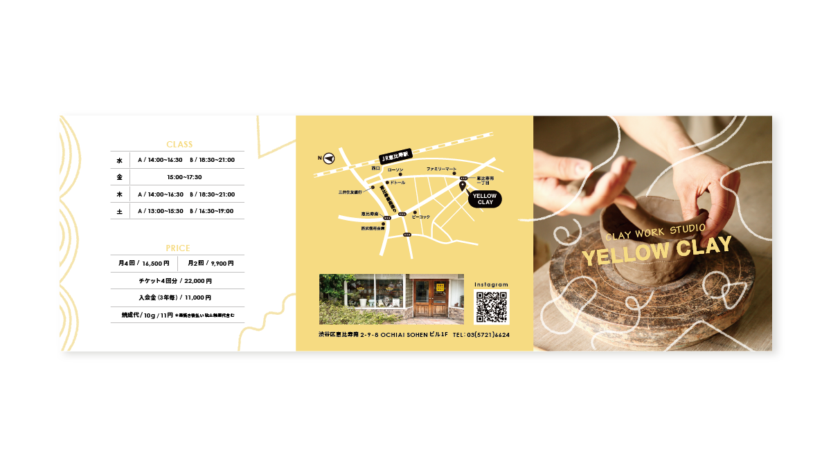 外側にスタジオの情報(クラスの時間・価格・場所)
