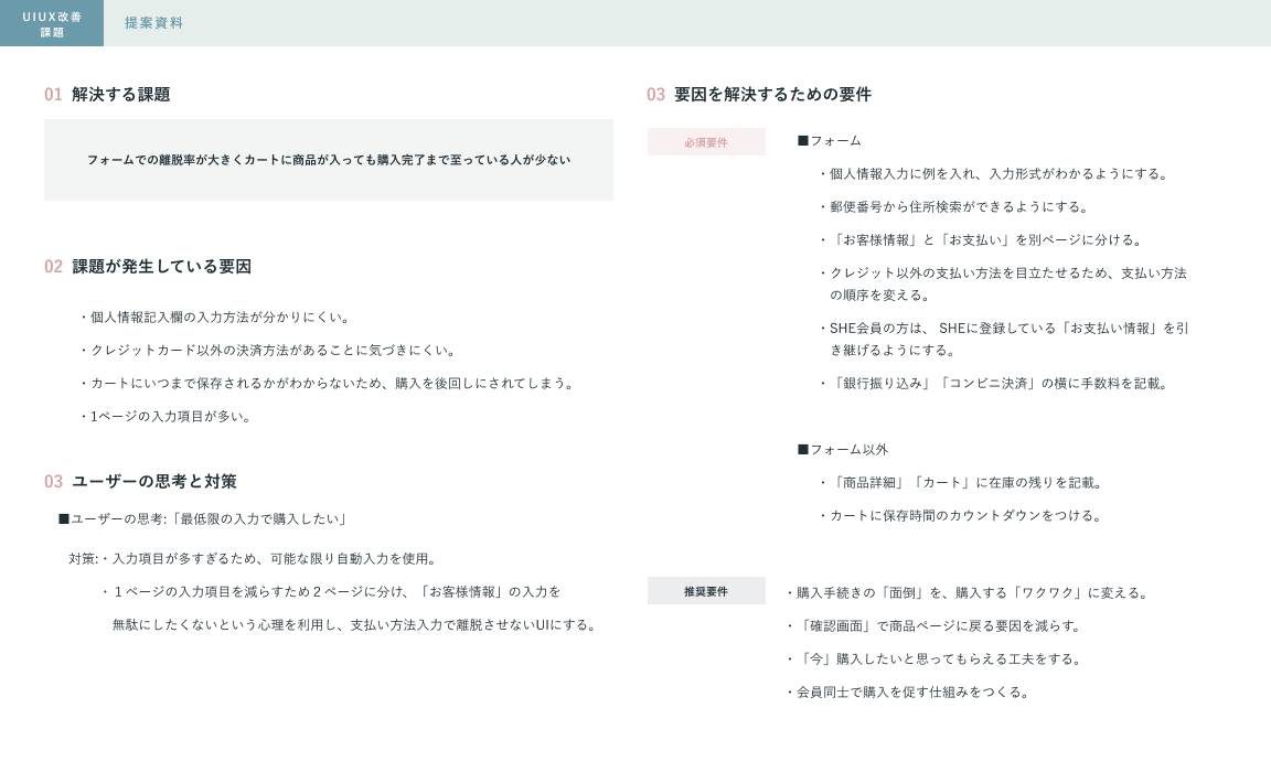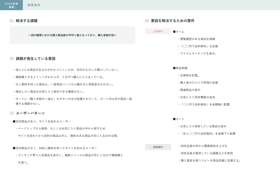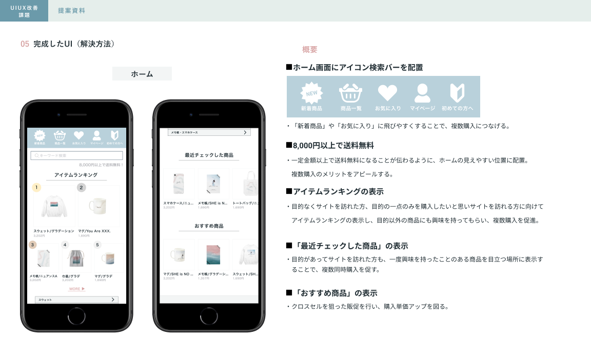 【課題】架空ECサイトのUIUX改善