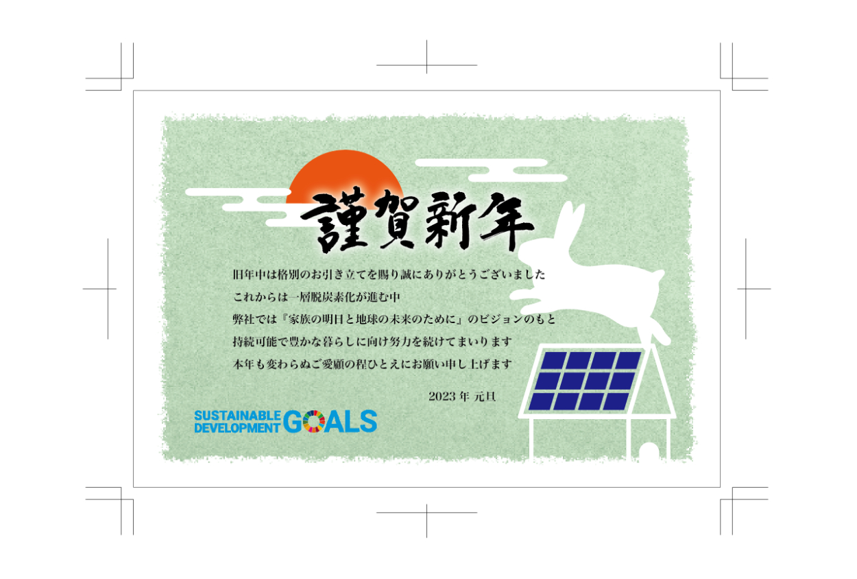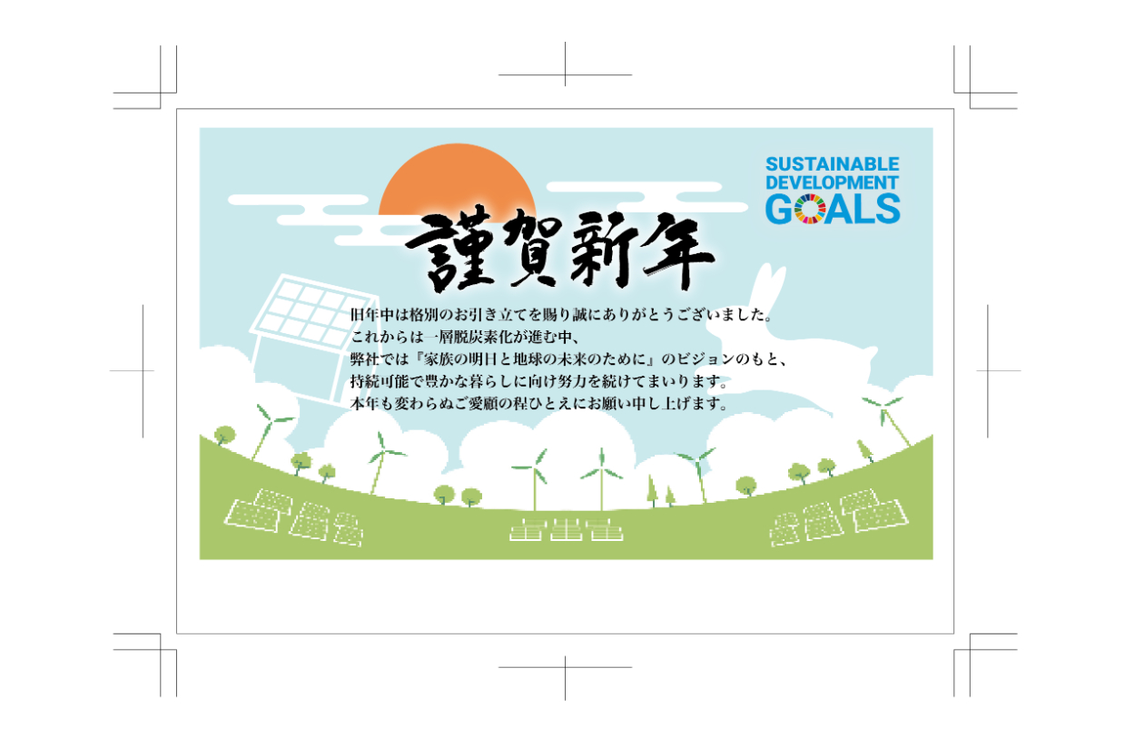 ・卯年、太陽光業界が伝わるよう、うさぎモチーフの雲と太陽光パネルをデザイン