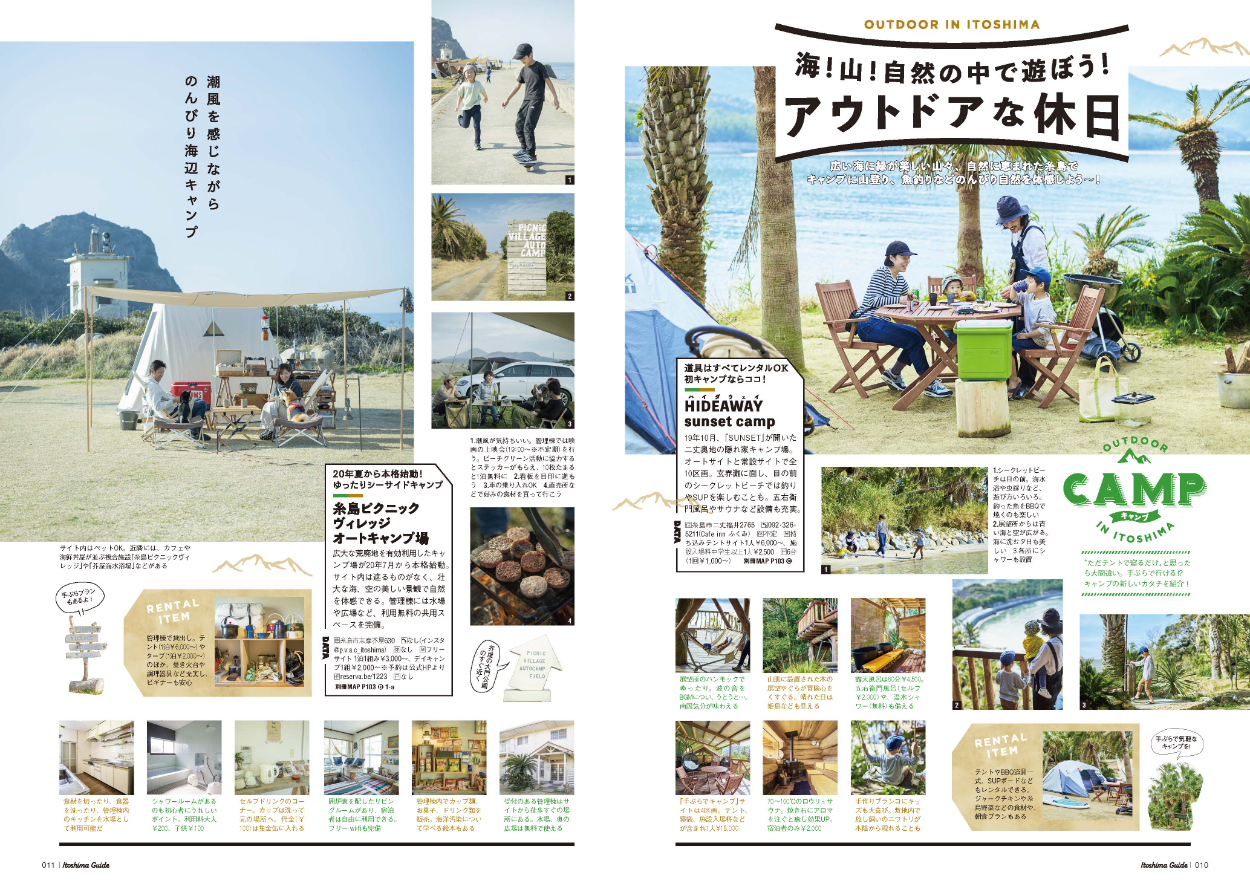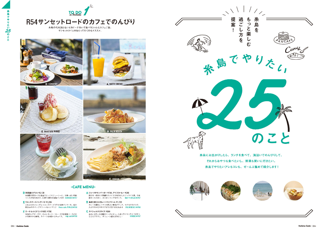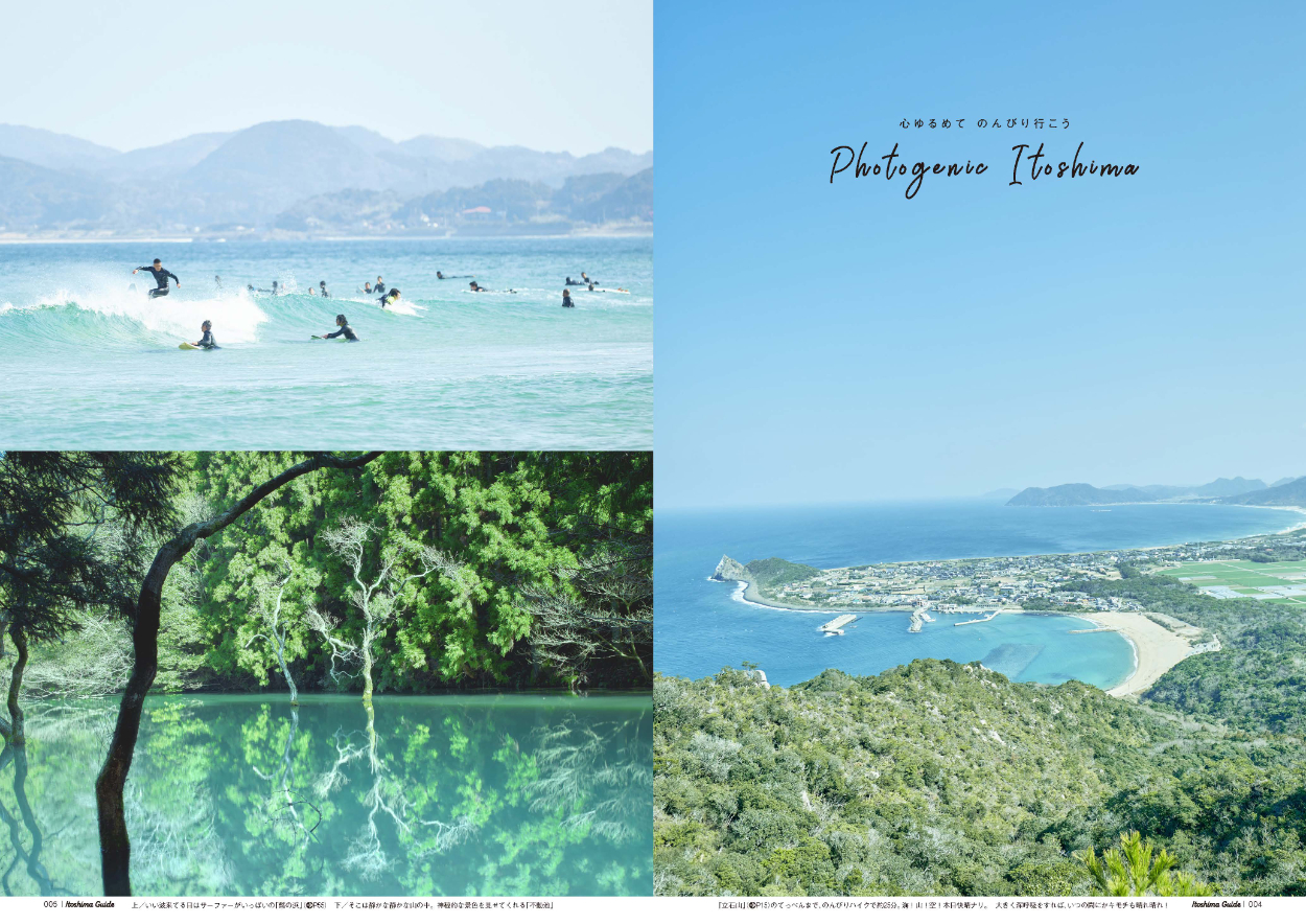 糸島案内 Walkermook MIYOCO_TADA エディトリアルデザイナー OVERVIEW 2013年より角川書店より年に1度発行。 YEAR 2013 - 2021 福岡の人気エリア糸島のムックです。ADと中面レイアウトをしています。糸島の爽やかな雰囲気を重視しつつ、情報も多いので、お出かけブックとして楽しげで見やすいデザインを心がけています。Client/KADOKAWA