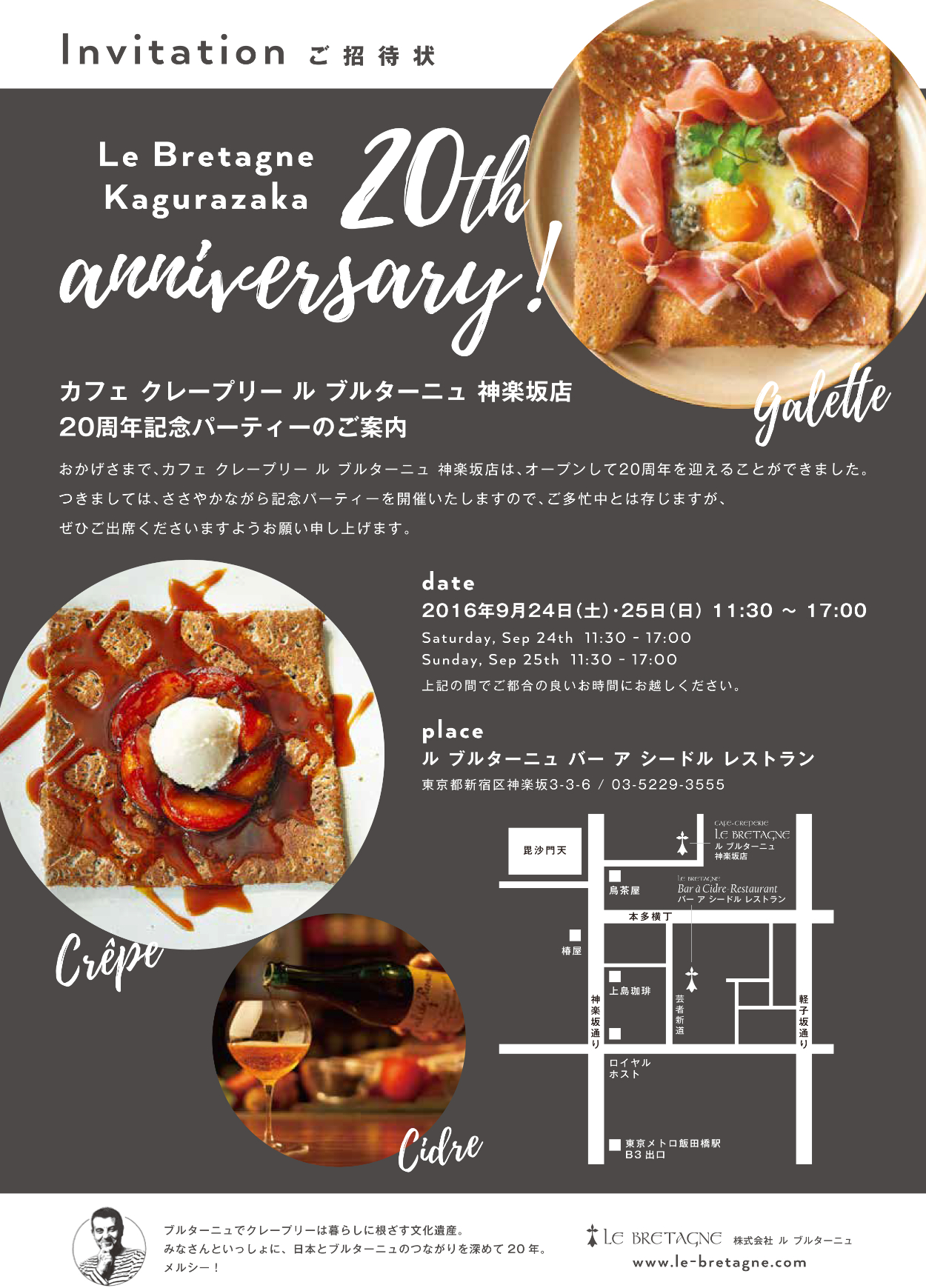 20周年の記念パーティーをお取引のある会社や個人様へ郵送、メールするための招待状を制作しました。