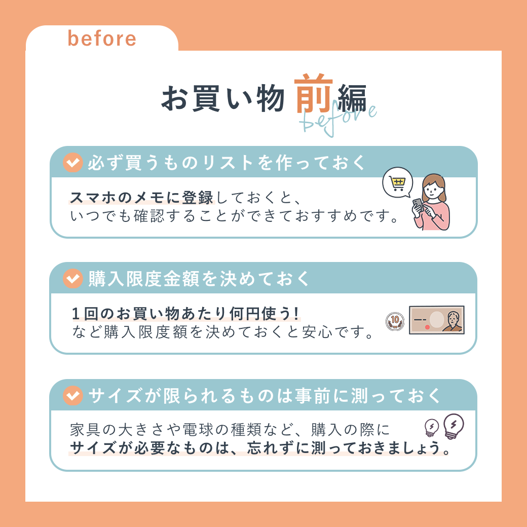 お買い物のシチュエーションに合わせて紹介し、内容が伝わりやすいよう整理しました。