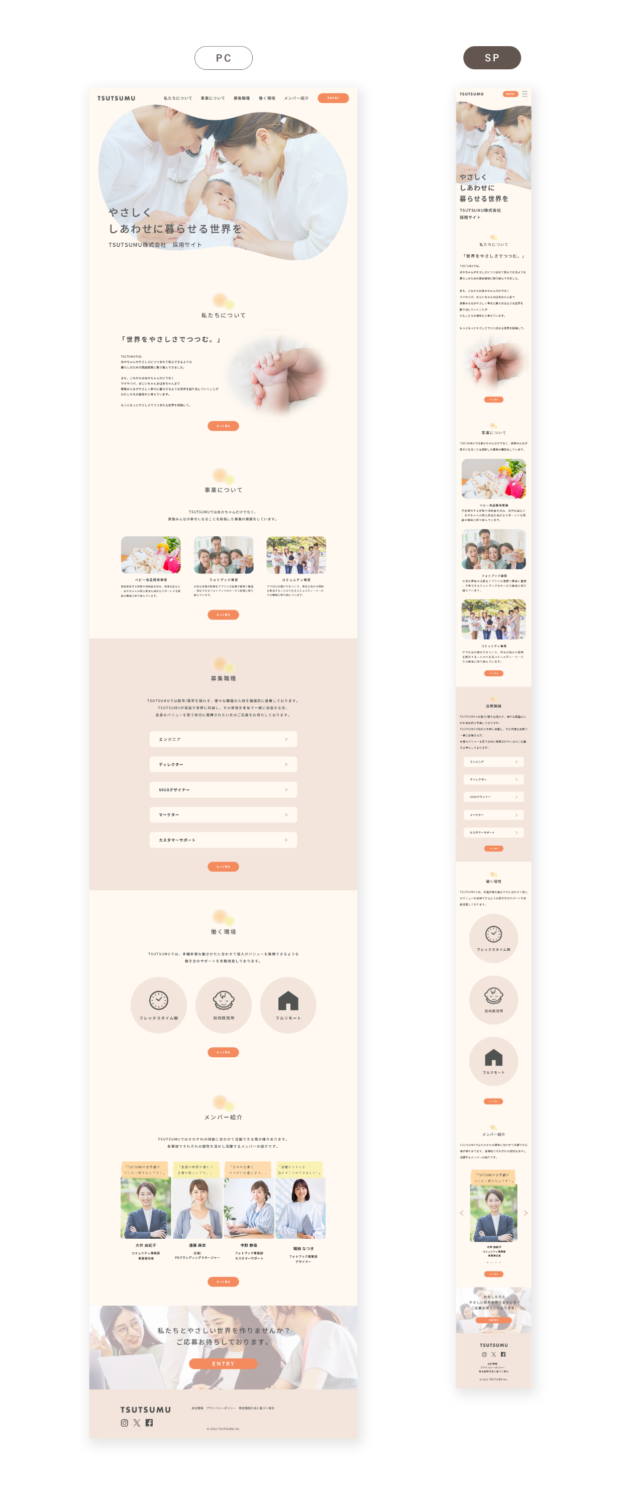 その言葉通り「やさしくつつみこむような温かいデザイン」をテーマに作成しました。
