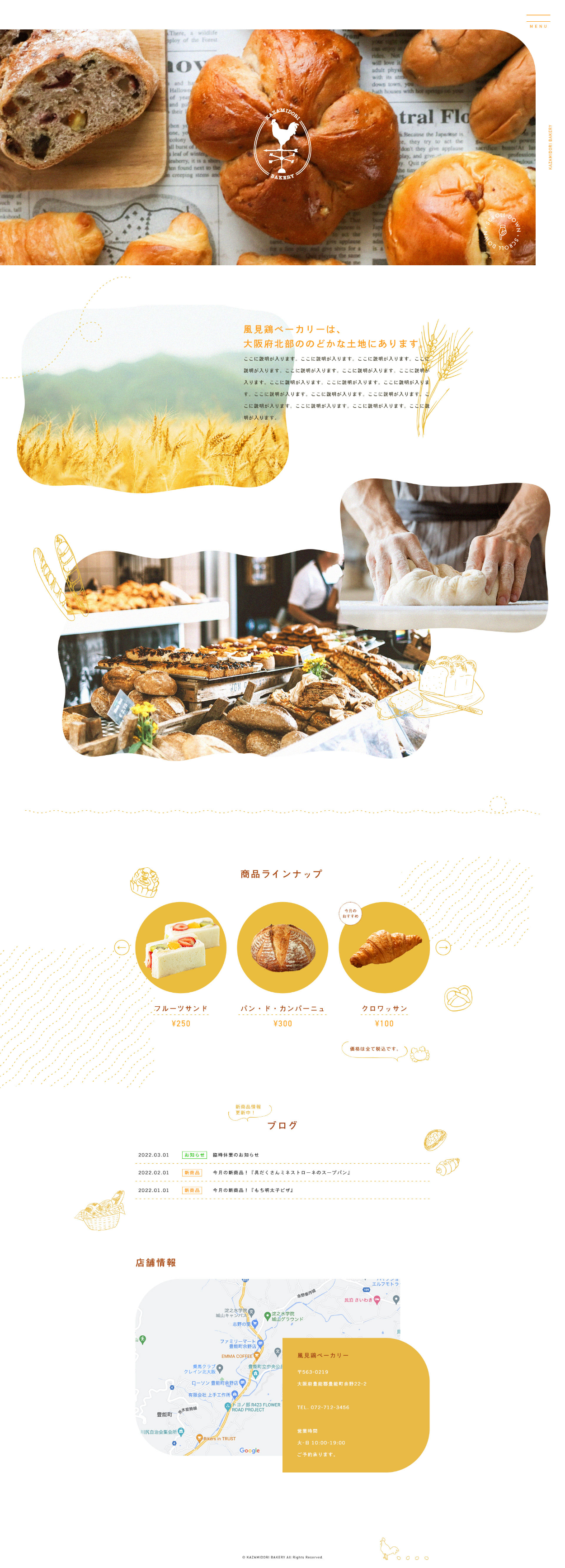 自主制作として、架空のベーカリーのサイトのデザインをいたしました。