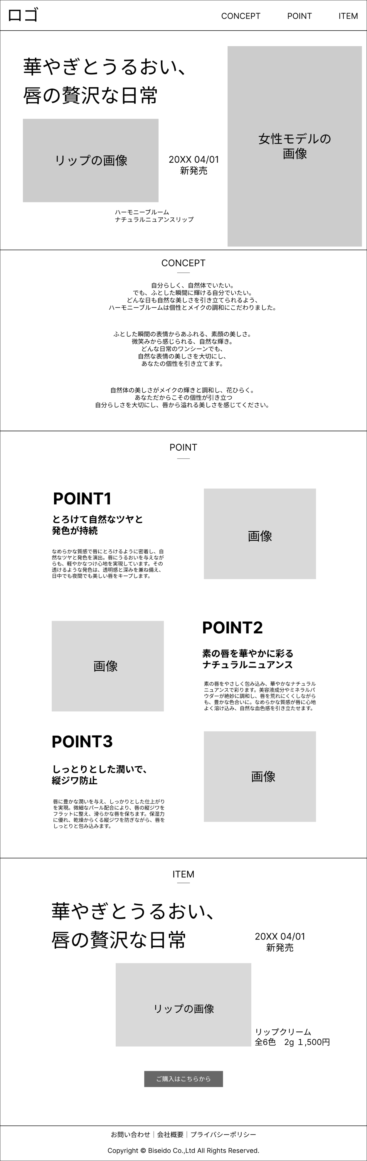 Figmaを用いてワイヤーフレーム制作しました。余白や文字間を意識しました。