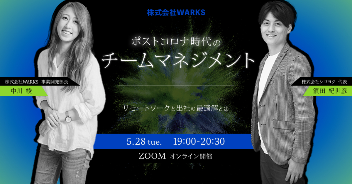 ◯登壇者2名の話で化学反応が起こるようなイメージの背景とサイドのグラデーション