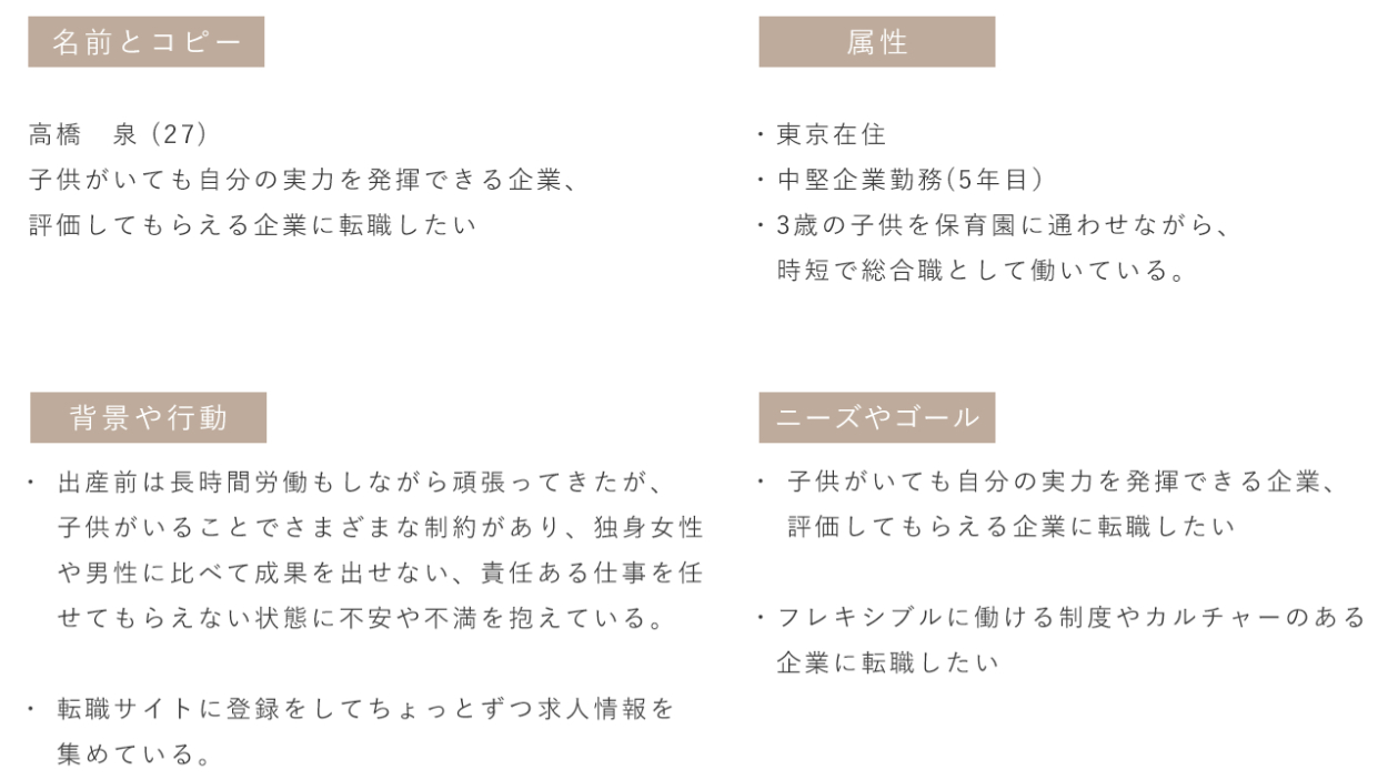 「子供がいるからこそ、いちママという視点でも、この優しい雰囲気や実現したい世界観に共感だな」という心理状態で募集業種を見る。