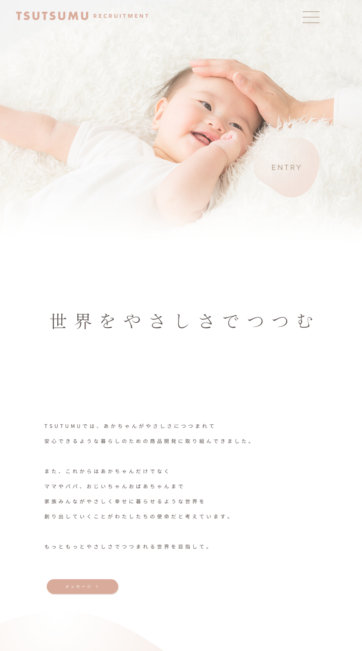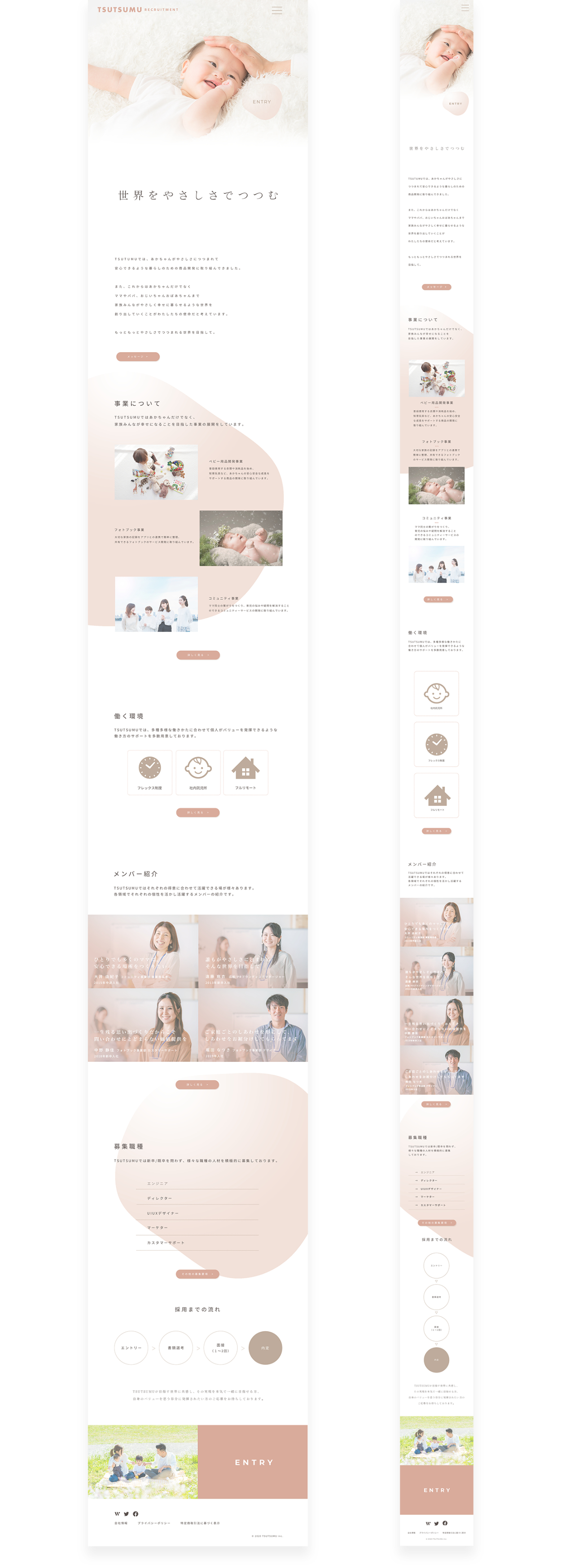 SHElikes MULTI CREATOR COURSEの課題制作で、ベビー用品を扱う企業の採用サイトのワイヤーフレーム設計、デザインカンプ作成、コーディング、レスポンシブ対応、サーバーアップまで一連の流れを習得しました。 制作時間:1ヶ月 制作時期:2021年7月