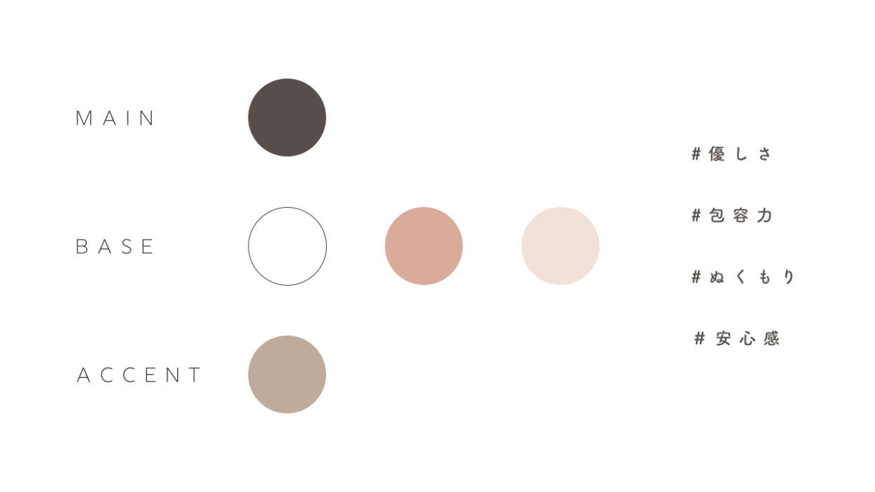 人肌をイメージさせるピンクベージュで、「優しさ」「包容力」「ぬくもり」「安心感」を表現。