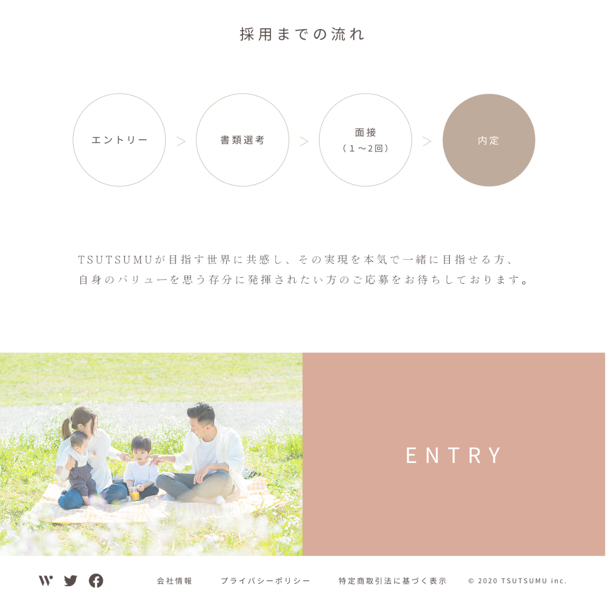①転職検索サイトで「TSUTSUMU」の求人を見て、採用サイトに訪れる