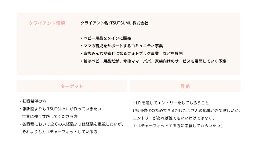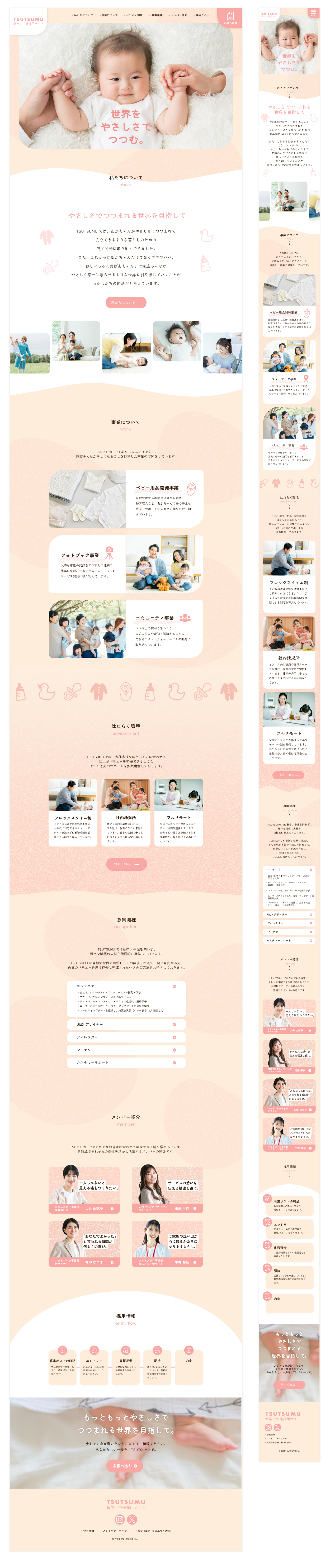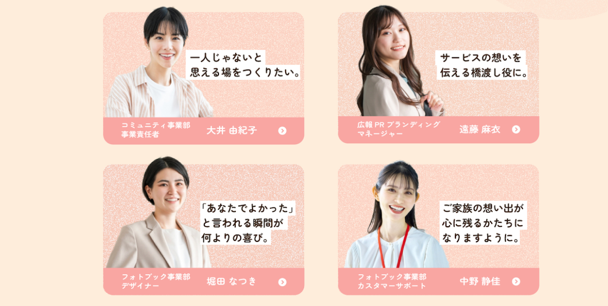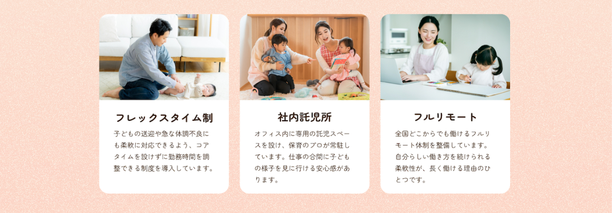 ・さまざまな家族の写真を配置することで、企業理念に近い考えを持った方へ想いが伝わるようにしました。