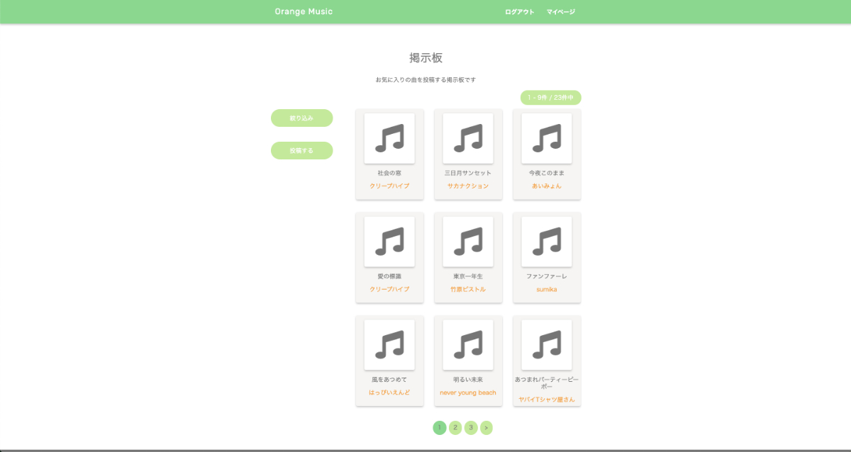 私は音楽を聴くのが好きなのですが、周りに同じ趣味の人がいないため、同じような趣味の人を見つけたり、他の人がおすすめする音楽が知れたりする掲示板があればいいなと思って作成しました。