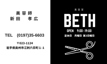 黒の背景にシンプルな白色のハサミで名刺のポイントに。