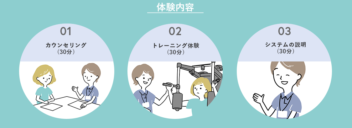 体験内容の部分のイラストは、親しみが持てるようなイメージで自分で描きました。